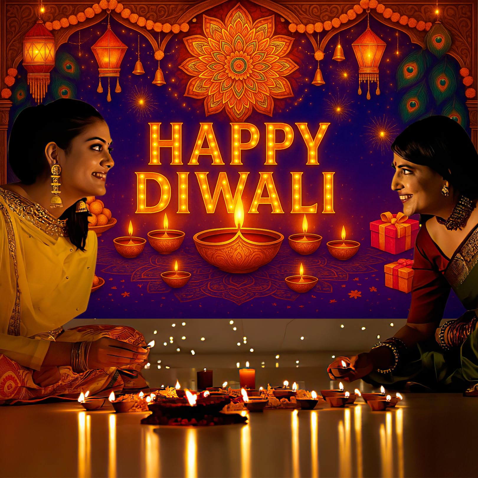 - Vibrant Design: Immerse your space in the spirit of Diwali with our exquisitely designed backdrop. Richly detailed with traditional motifs including glowing diyas, elegant peacocks, soft candlelight, and lush marigolds, it creates a captivating centerpiece that beautifully honors the Festival of Lights.