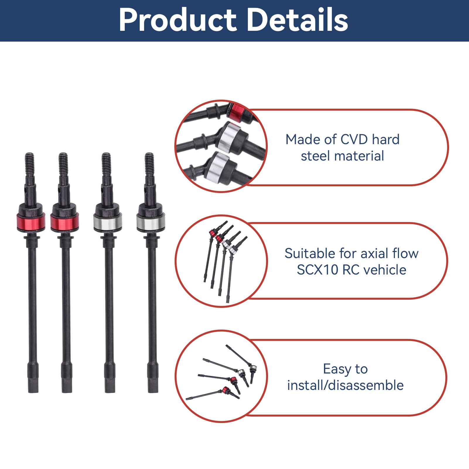 - [Fit For]: Nice replacement accessories for the old or broken one. Suitable for Axial SCX10 RC car. Reasonable design and perfect compatibility make installation and disassembly for the drive shaft very easy and convenient.