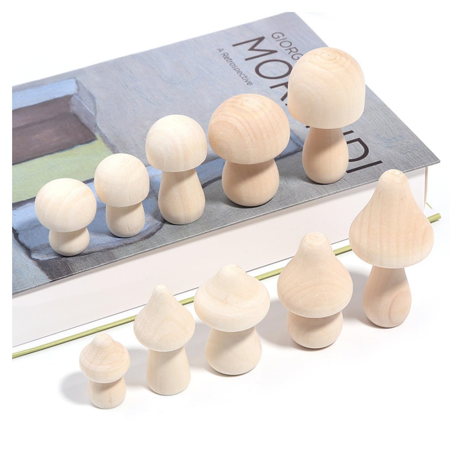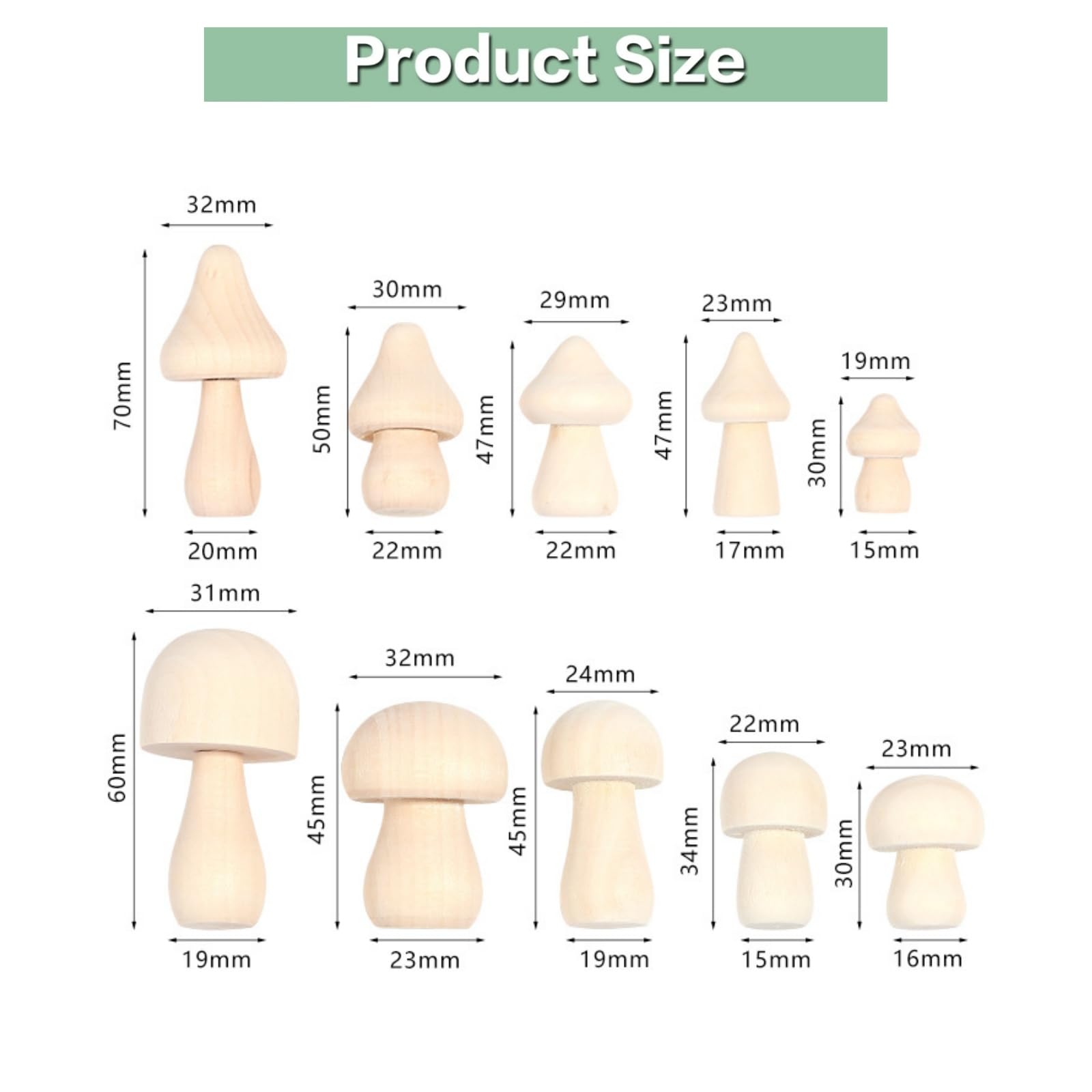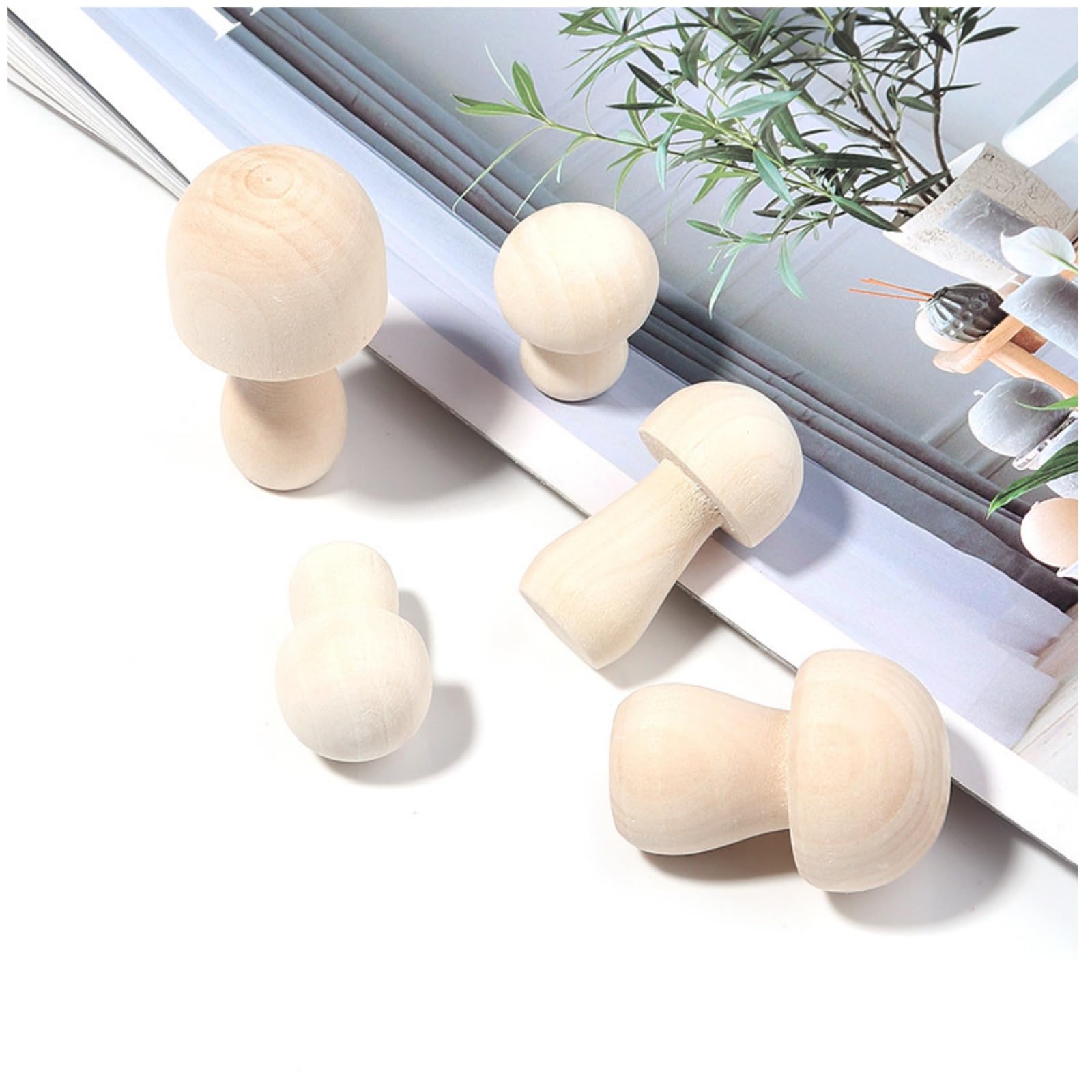 10 Pcs Unfinished Wooden Mushroom Unpainted Wood Mushrooms Various Sizes Mushroom for Arts DIY Crafts Table Decorattion