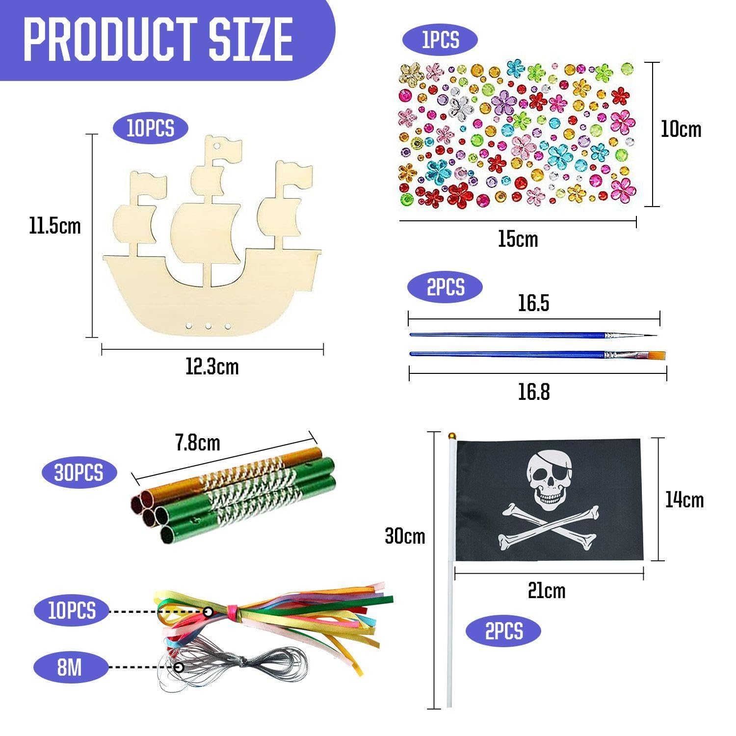 1. This Pirate Ship Wind Chime Set Is Made Of Various Materials Such As Wood, Metal And Plastic. The Wood Chips Are Strong And Durable, The Wind Chime Tube Is Brightly Colored, The Blue Brush For Painting Is Reasonably Designed, The Nylon Bristles Are Soft, The Metallic Silver Wire Is Shiny, And The Rhinestone Stickers Colorful.