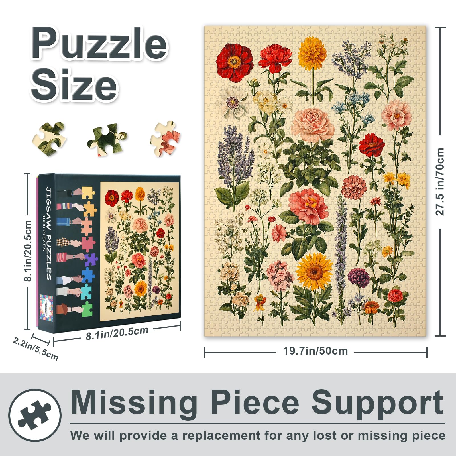 - 1000 Piece Puzzles for Adults: Finished Size: 27.5*19.7 in / 70*50 cm. The packing box is sturdy and exquisite with the size of 8*8*2 inch. It is a nice gift for relatives and friends.