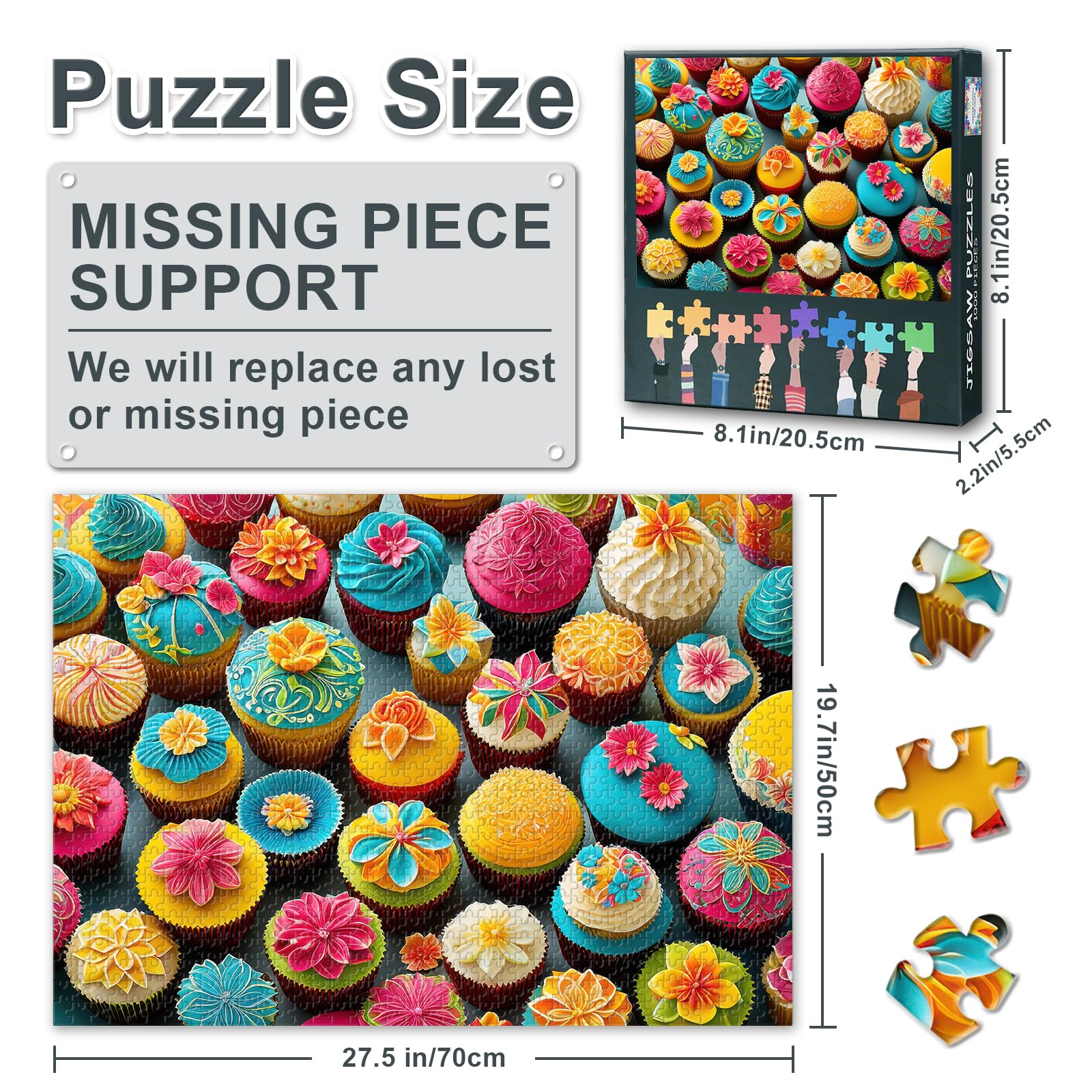 1000 Piece Puzzle for Adults – Cupcake Garden Fantasy Jigsaw Puzzles, Floral & Frosting Fusion Adult Puzzles 1000 Pieces, Whimsical Desserts Art, 27.5×19.7 Inches