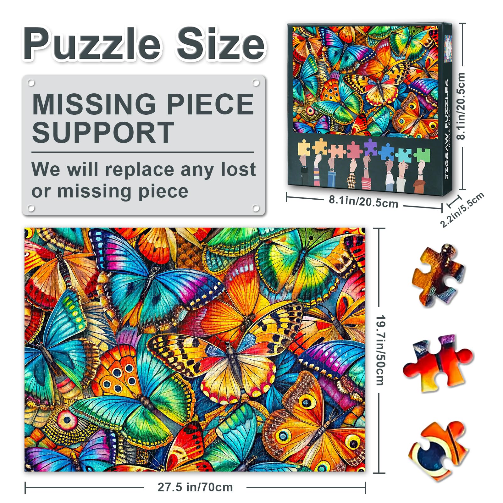 1000 Piece Puzzle for Adults Hand Drawn Artistic Butterfly Wing Pattern Collage Puzzles Vibrant Colors Jigsaw Puzzles Family Challenging Puzzle Gifts 50×70 cm