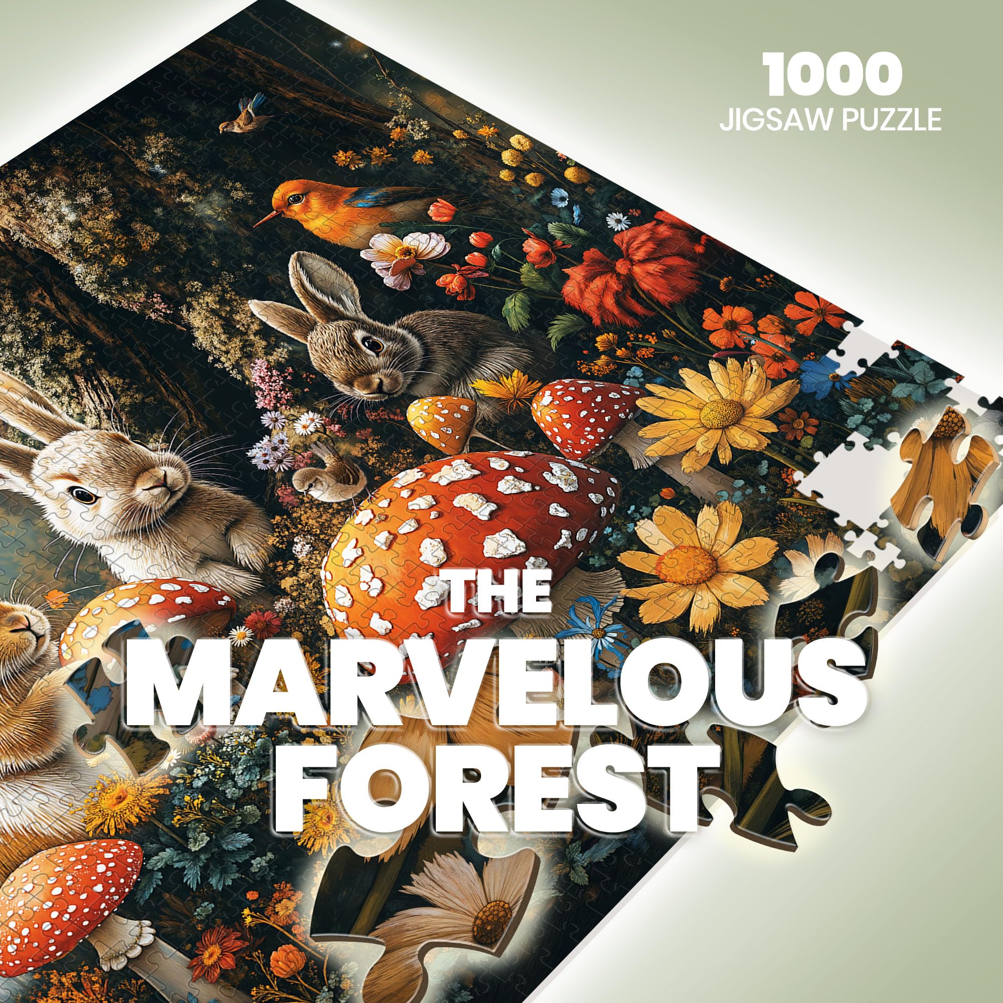 - FOREST’S WHISPERING SECRETS – Step into a world where mushrooms whisper ancient tales and bunnies dart through sunlit clearings. Our 1000 piece puzzle for adults invites you to wander through a lush, mystical forest. Feel the soft moss beneath your feet, hear the rustle of leaves, and smell the earthy scent of the woods. As you piece together each fragment, the forest comes alive, wrapping you in its serene embrace. The forest’s magic guide your hands, leading you to a place of peace and wonder.