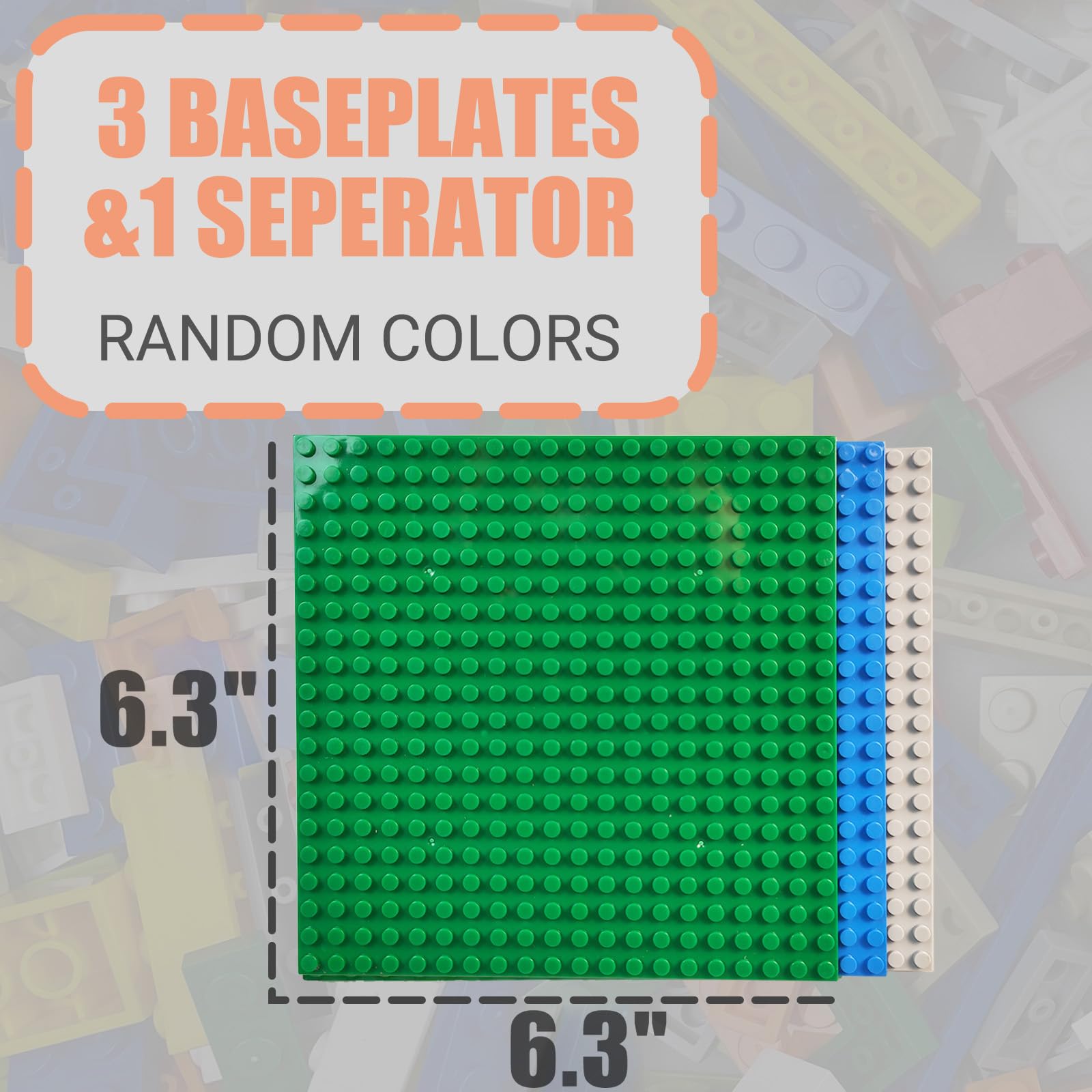 1000 Pieces Building Blocks, Classic Stackable Base Plates, 3 6.3″ x 6.3″ Blue, Gray and Green Base Plates,Compatible with All Major Brands