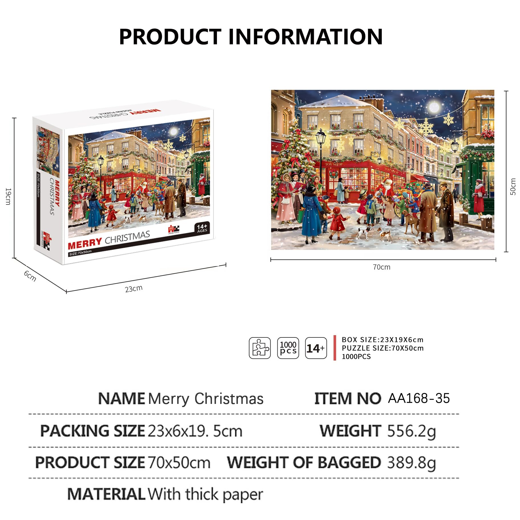 - PERFECT FOR HOLIDAY FUN: Celebrate the spirit of Christmas with this 1000-Pieces Christmas Puzzle! Featuring a colorful and festive design, this puzzle brings the holiday cheer to life, making it an ideal activity for family nights and seasonal gatherings.