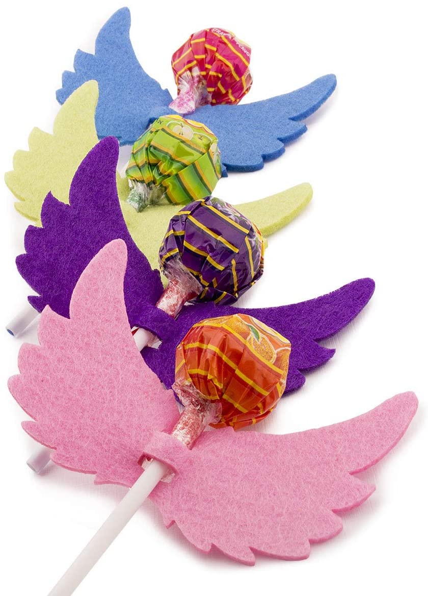- There are 2 openings at the angel wing body to facilitate the lollipop. It will certainly surprise your guests with these colorful felt angel wing kits, which are particularly suitable for baptism, baby shower and children birthday parties.