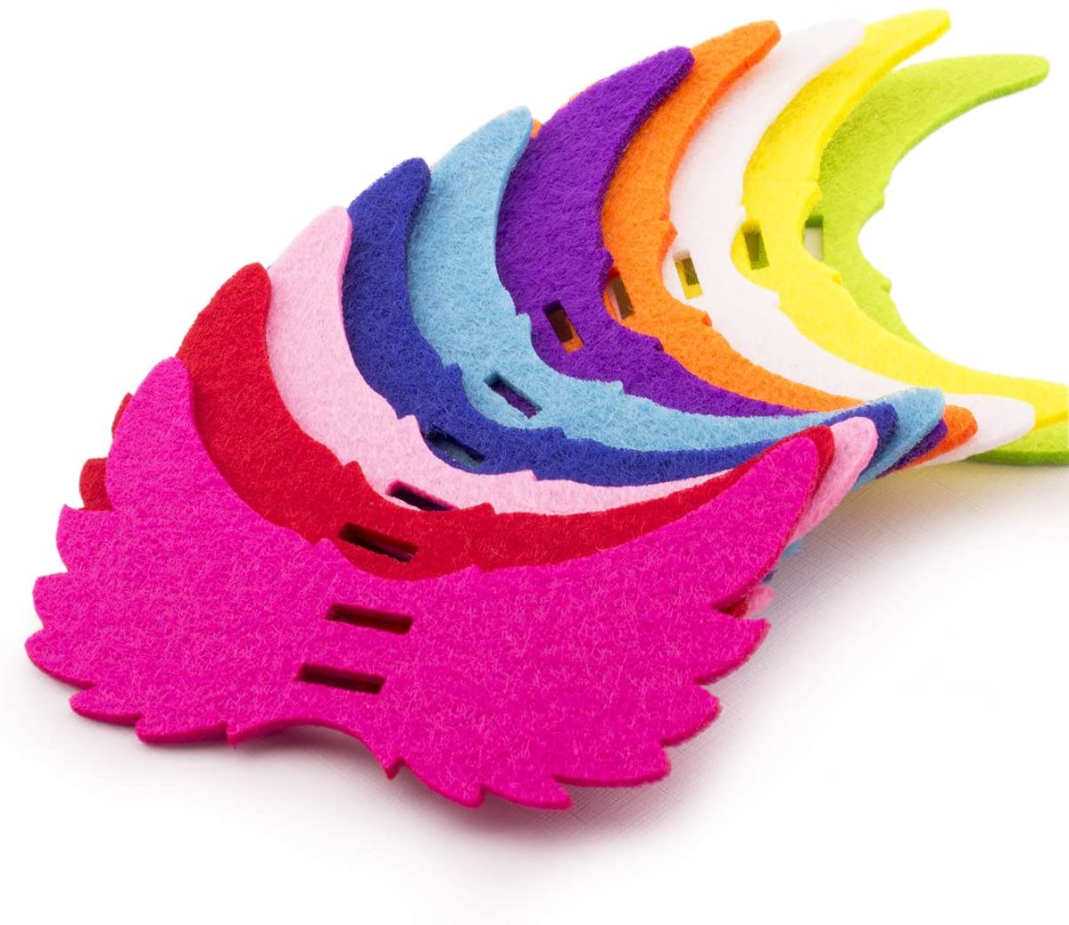- The package consists of 100pcs of felt angel wing lollipop tag die cut in 10 colours.