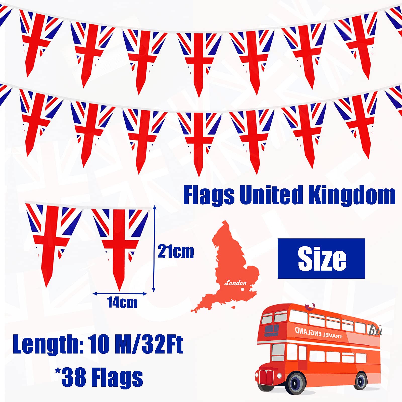 10m/33ft Union Jack Flag Bunting British Flag Bunting Banner with 38 Triangle Flags, United Kingdom Flag Bunting UK Bunting Flags for Union Jack Sport Events Royal Party Decoration Supplies