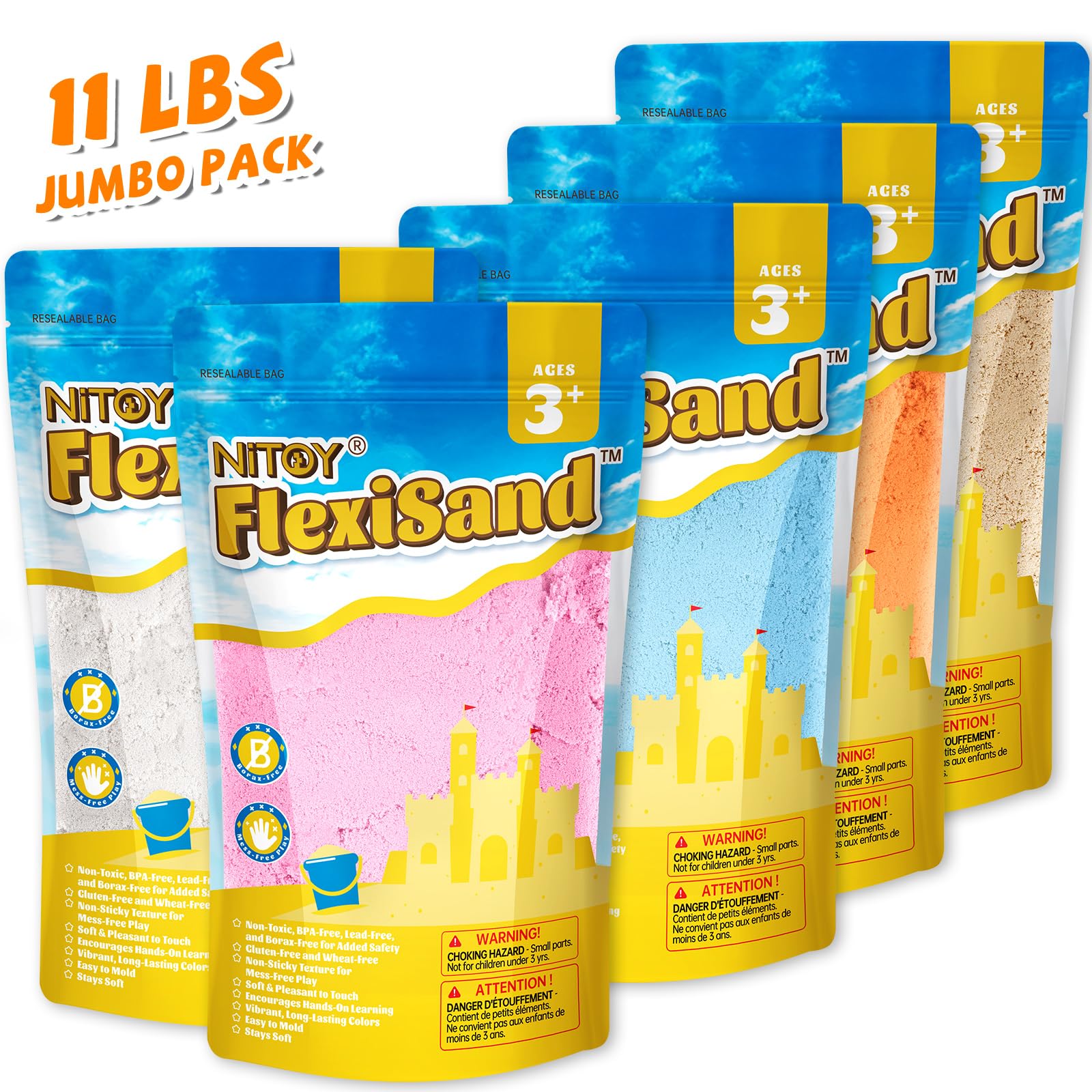 - 11 Lbs Large Combo PackTo provide endless fun for children who can’t get enough of playing with sand, this large package includes high-quality refill packs for numerous creative activities. The natural sand color gives children the feeling of playing on a real beach. The substantial weight of 11 pounds brings lots of joy to kids.