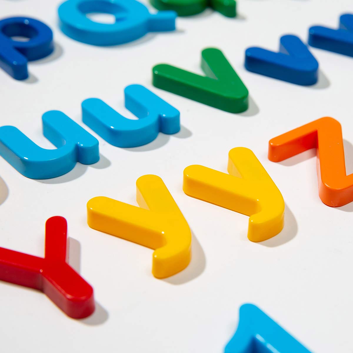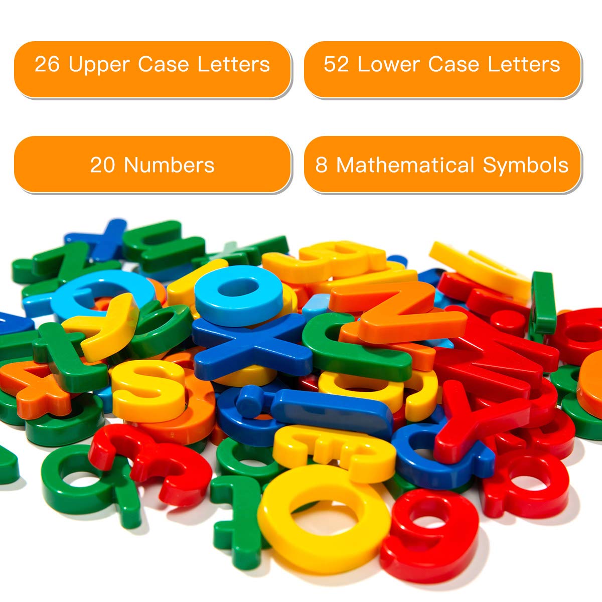 - Best Complete Set: You will receive 115 pieces of magnetic letters and number toys, including 26 uppercase letters AZ (2.83 cm/1.11.2 inch), two sets of lowercase letters az (totaling 52 pieces, 22.1 cm/0.790.83 inch), two sets of numbers 09 (totaling 20 pieces, 2.23 cm/0.871.18 inch), 8 mathematical symbols, and 5 currency symbols (23 cm/0.791.18 inch). Such a rich combination can meet various educational needs in early childhood development
