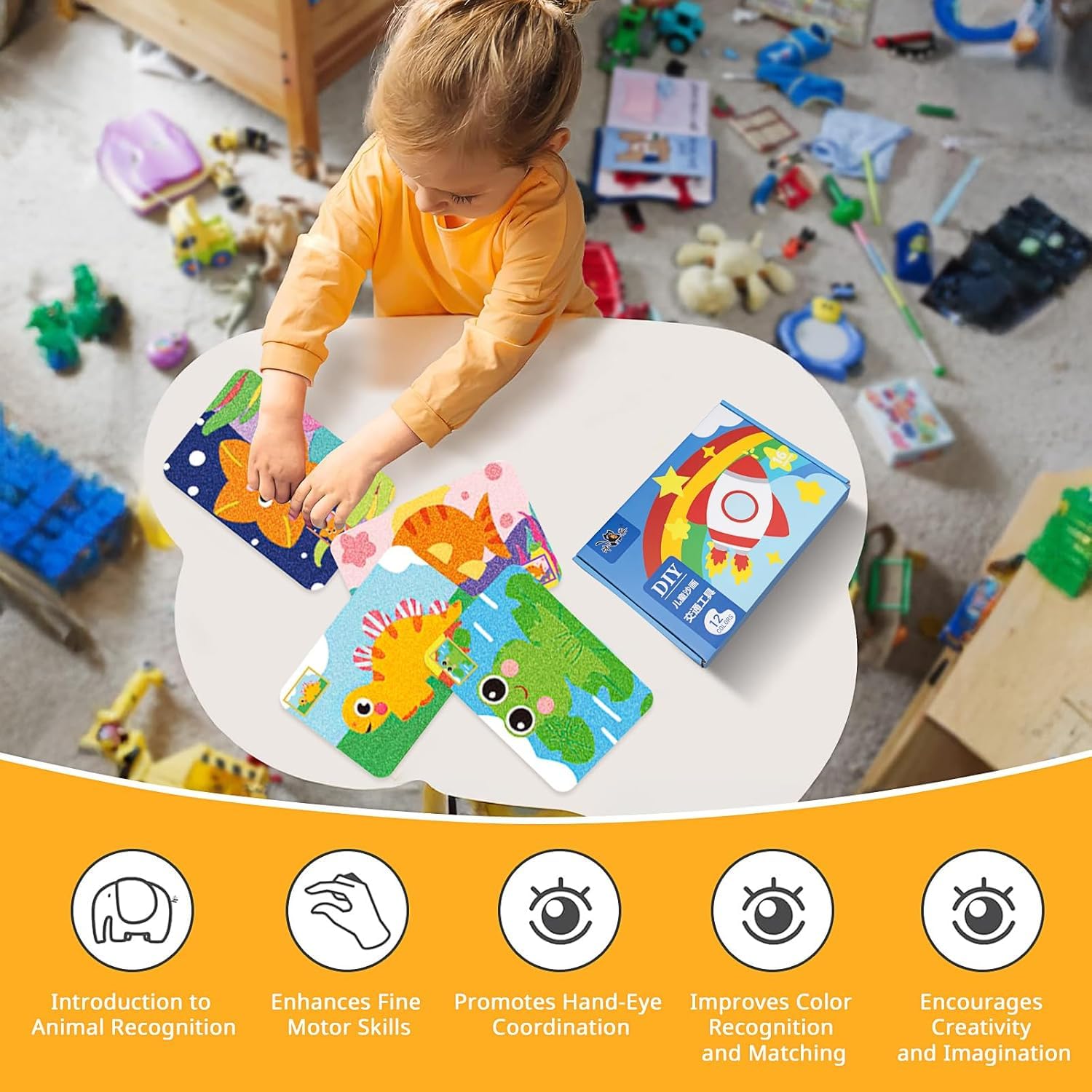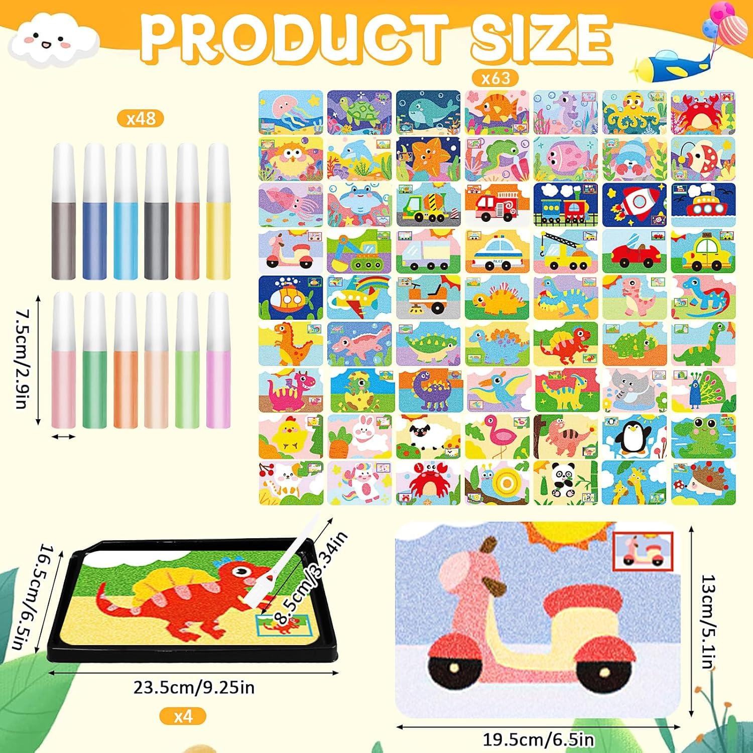 - Various Patterns: our sand art kit has 63 different sand painting board patterns to choose from; The pattern designs are cute and rich, with bright colors, which can help little ones enhance their creativity and imagination, and exercise hand eye coordination
