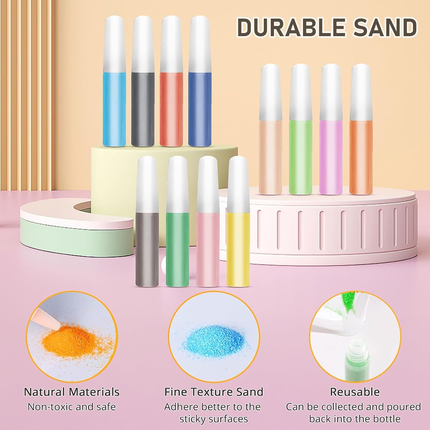 - Complete Accessories: our sand art kits include a flow spout sand tray, brushes and 48 bottles of bottled craft sand in 12 colors; When painting, place the board in the sand tray; There is a certain height around the sand tray to prevent the sand from being scattered everywhere