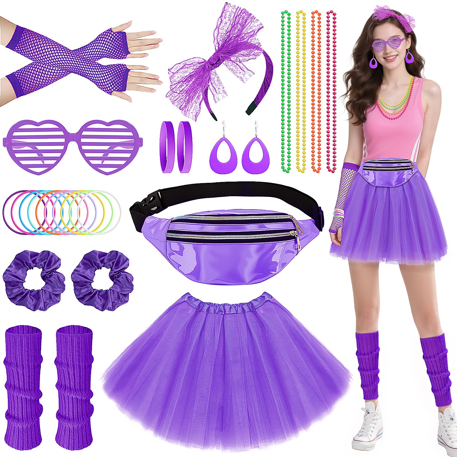Crafted with attention to detail and made from high-quality stretchy materials, 80s costume outfits accessories set isn’t just eye-catching—it’s comfortable enough to dance in all night long.