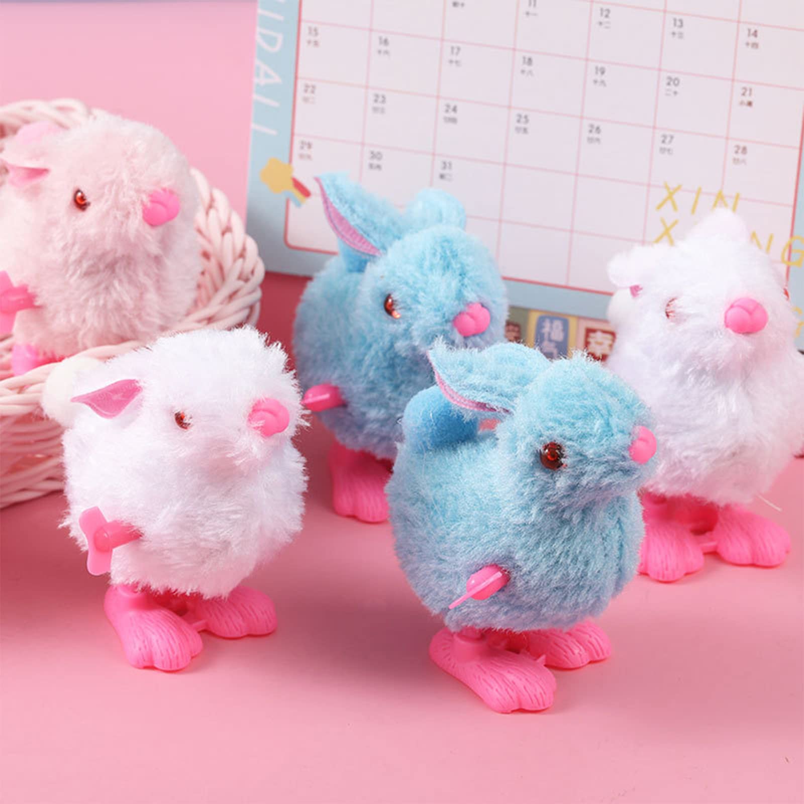 - [Lovely Shape] Our plush rabbit wind up toys come with a lovely looking, furry and fluffy, confortable in touch; these plush chick clockwork toys with attractive yellow color and vivid appearance, can decorate your Easter basket and Easter-themed box very well, add more festive atmosphere