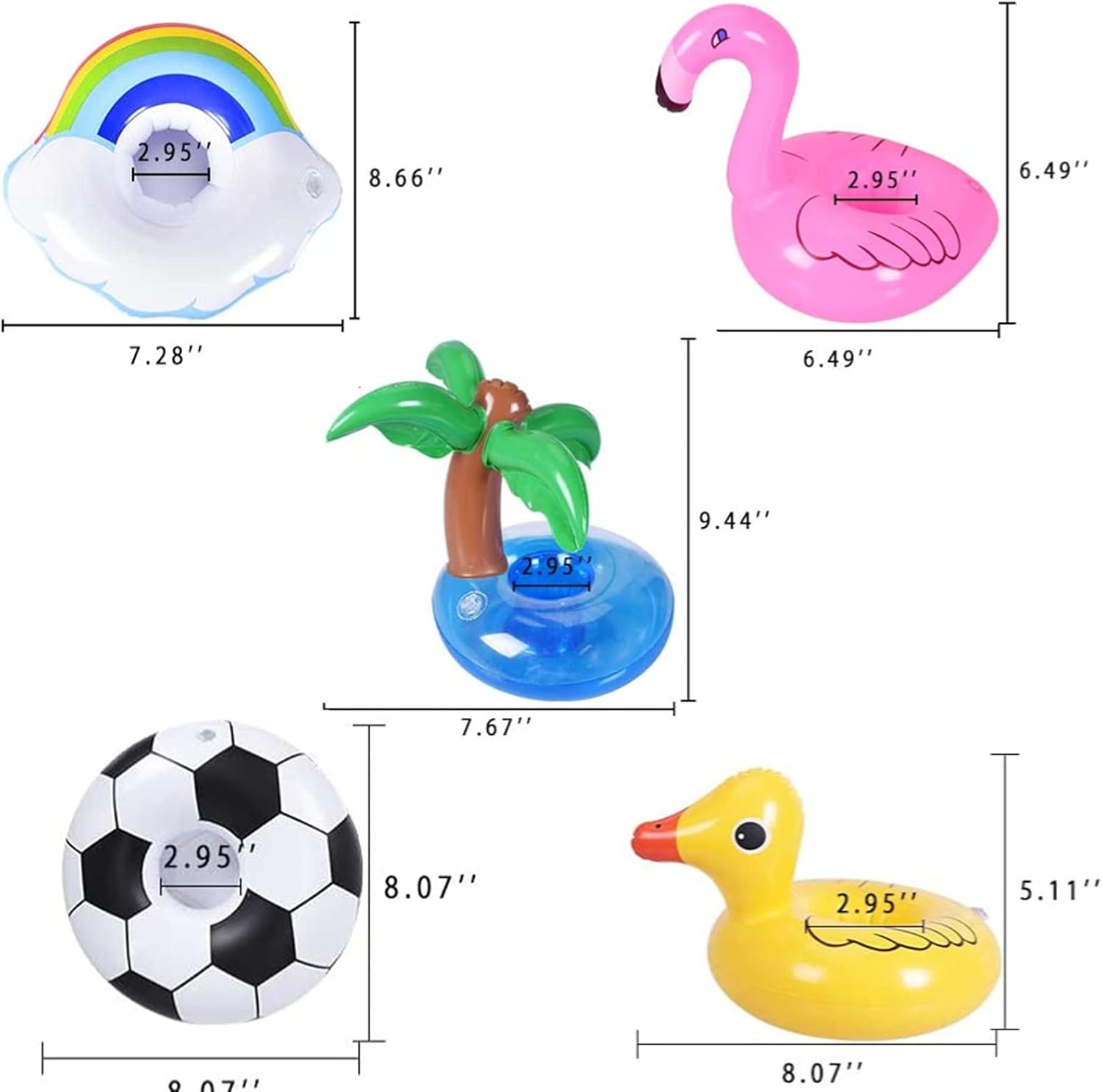 - 13 Designs : No Duplicates! Enough quantity to share with friend and family and every one can get different inflatable cup holders, Coconut tree,flamingo,swan,Mermaid,duck, rabbit,unicorn,elephantetc.