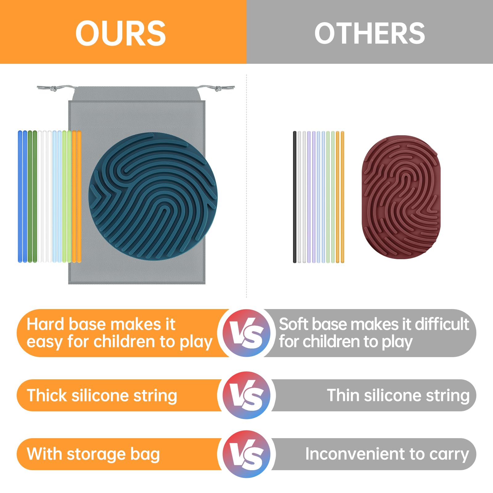 - Innovative Play: The toy offers versatile play options, allowing children to press the silicone strings into matching grooves on the base. They can also loop the strings into 3D shapes, adding creative and fun possibilities. This encourages imagination, improves fine motor skills, and boosts focus.