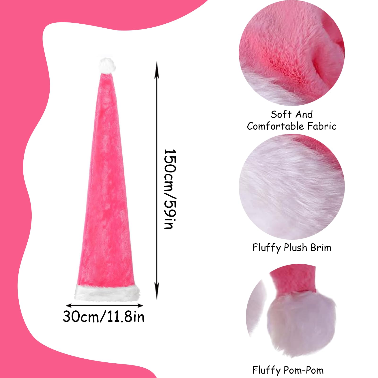 150cm Christmas Hats Santa Hat for Adults,Long Deluxe Velvet Xmas Santa Claus Hat,Unisex Velvet Comfort Christmas Party Hat Thicken Classic Fur for New Year Festive Christmas Party Supplies(Pink)