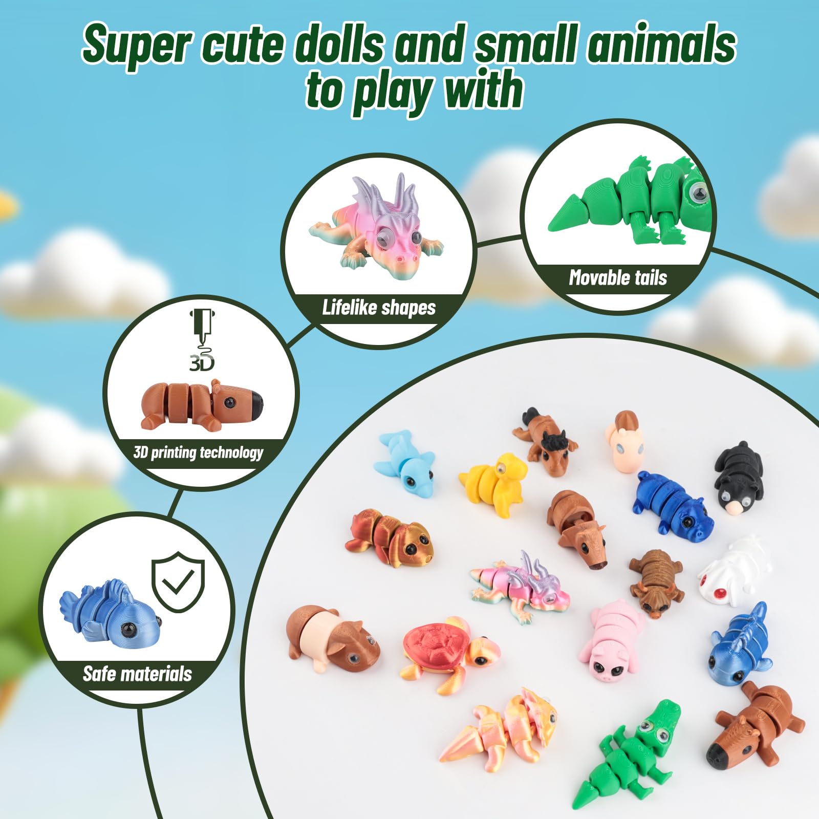 3D Printing CraftsmanshipCrafted using advanced 3D printing technology, this process ensures the 3D printed fidget toy and toy animals showcase exquisite details.