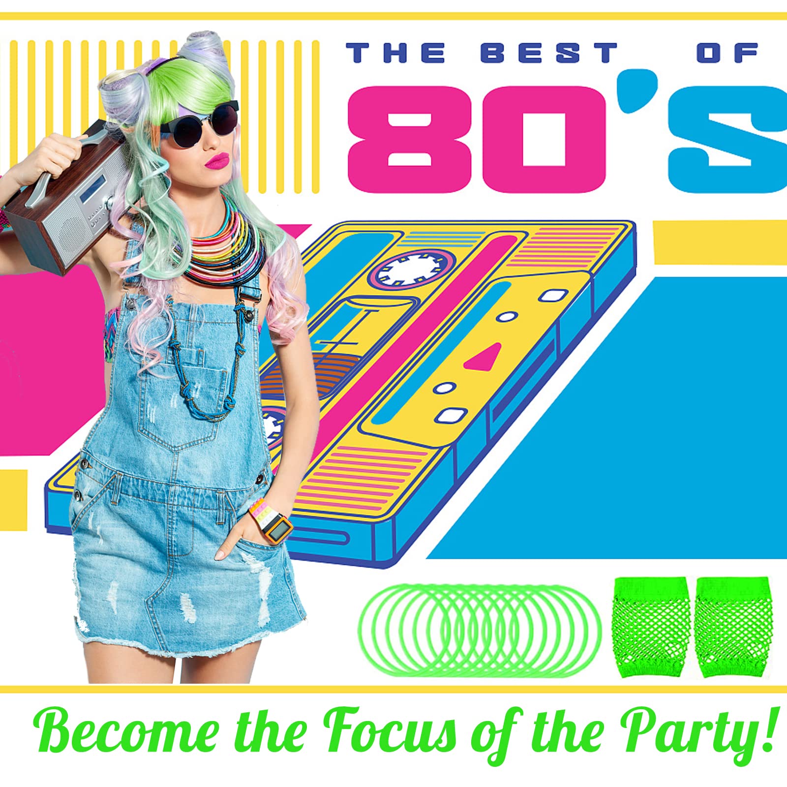 - Leading Fashion Retro StyleWe especially designed this set of purple ladies 80s accessories to help the retro trend lovers back to the 1980s, the vibrant green color and stylish decors can make you become much more eye-catching in the retro trend 80s party!