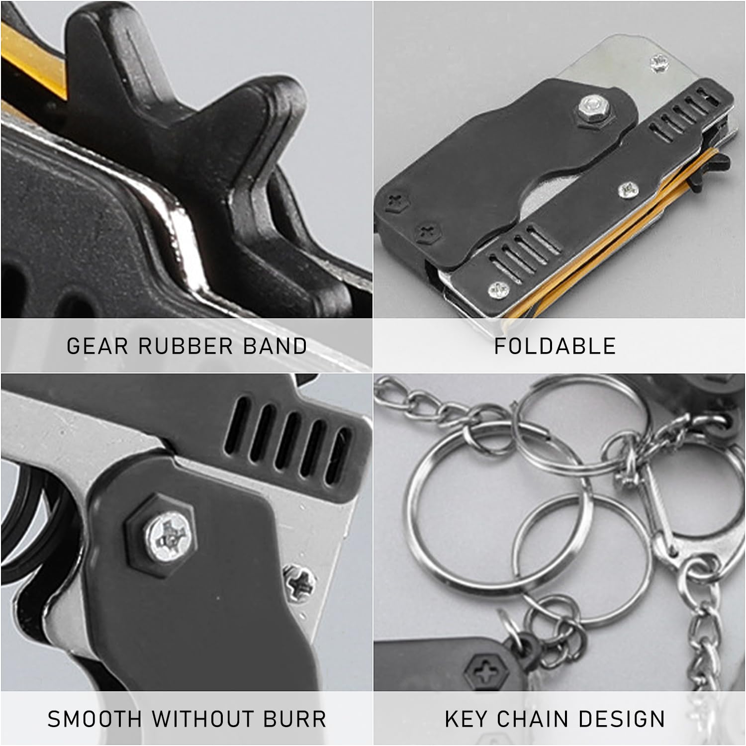 1. The rubber belt gun is strong and wear-resistant, small in size, foldable and reusable.