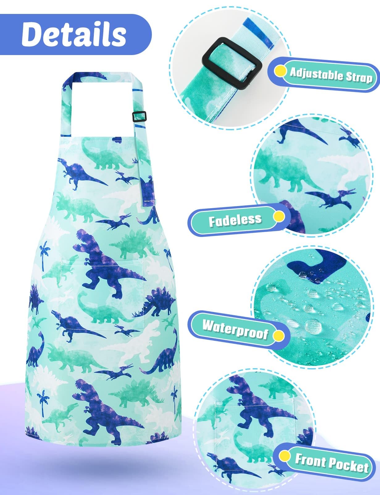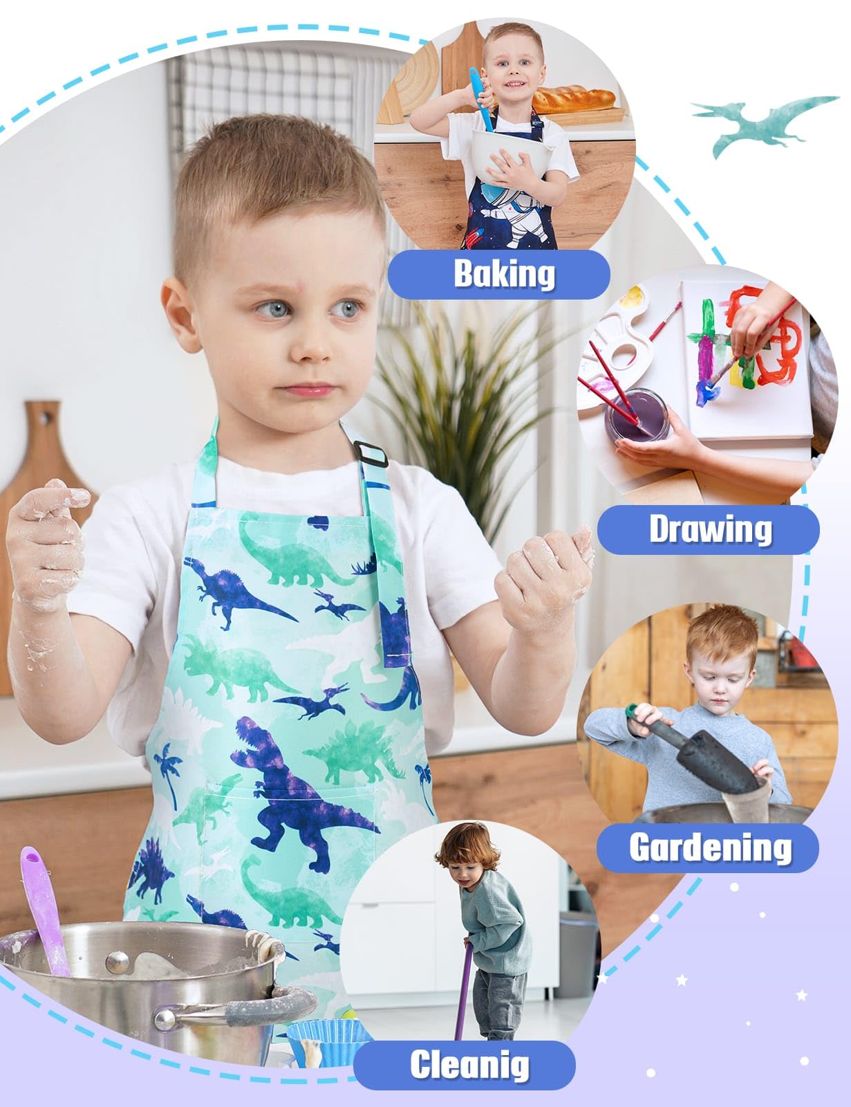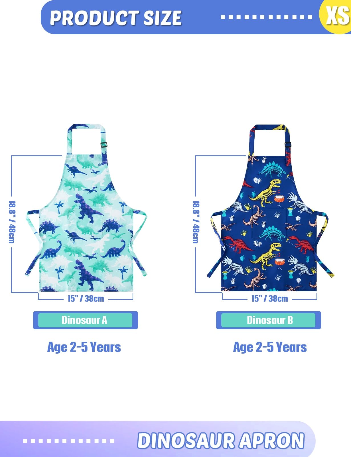 1.Two-piece apron set is convenient for use in different scenarios or to bring protection to more children. There are two size for your choice: XS – 38 x 48 cm, suitable for 4-6 years kids. S – 45 x 65 cm, suitable for 7-10 years kids.