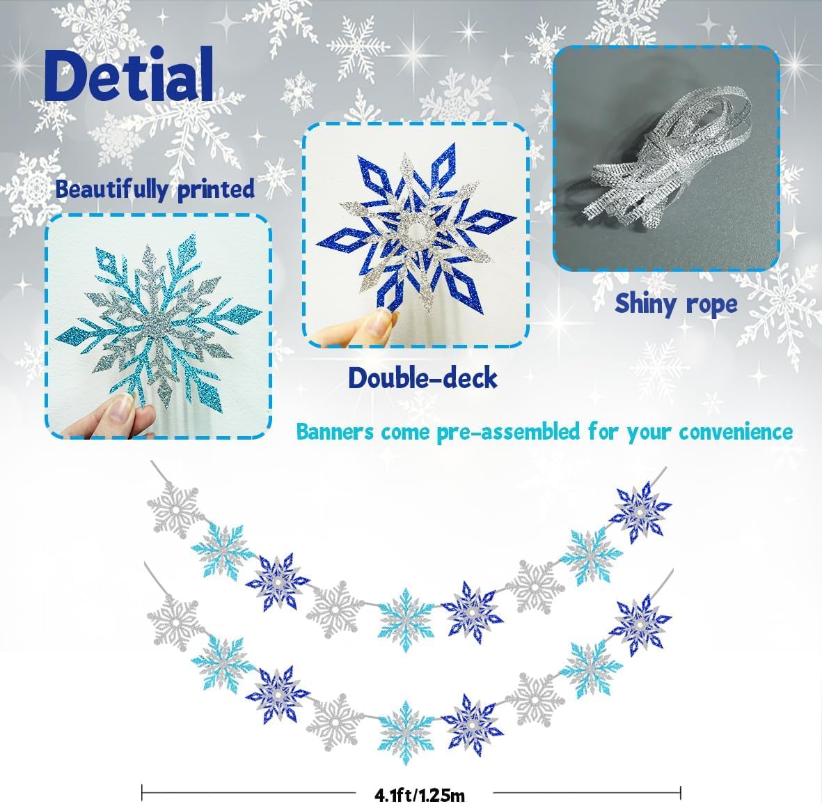 2 Pcs Silver Blue Snowflake Banner, Snowflake Winter Party Decorations, Snowflake Garland Christmas Party Decorations (MIX)