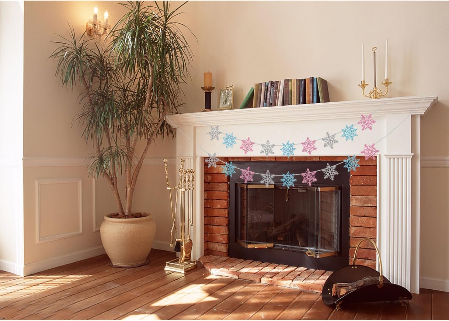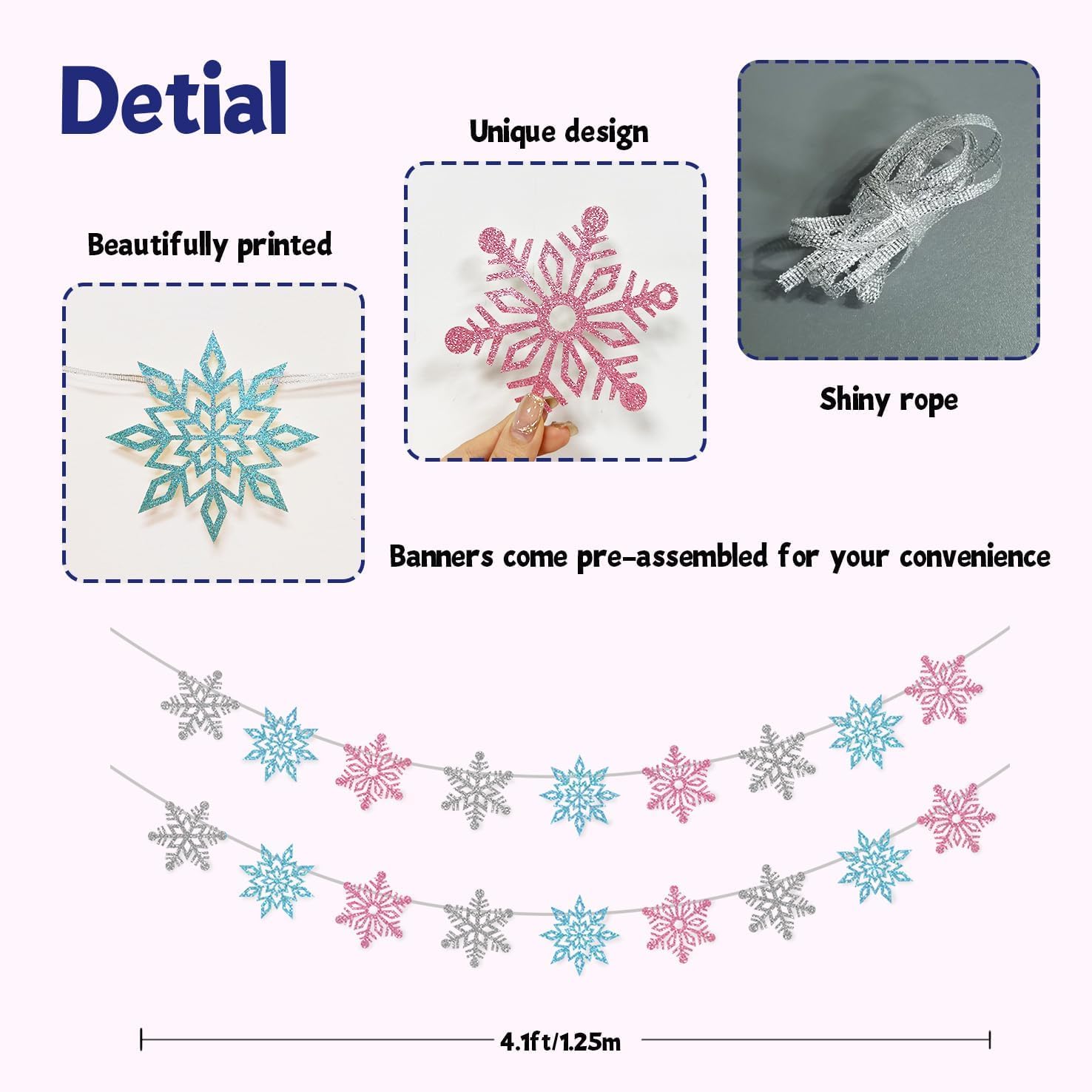 - You Will Get: 2 pieces glittery Snowflake Banners, each banner has 3 different colors Snowflakes (Light Blue, Pink, White Color), which can create a colorful winter atmosphere.