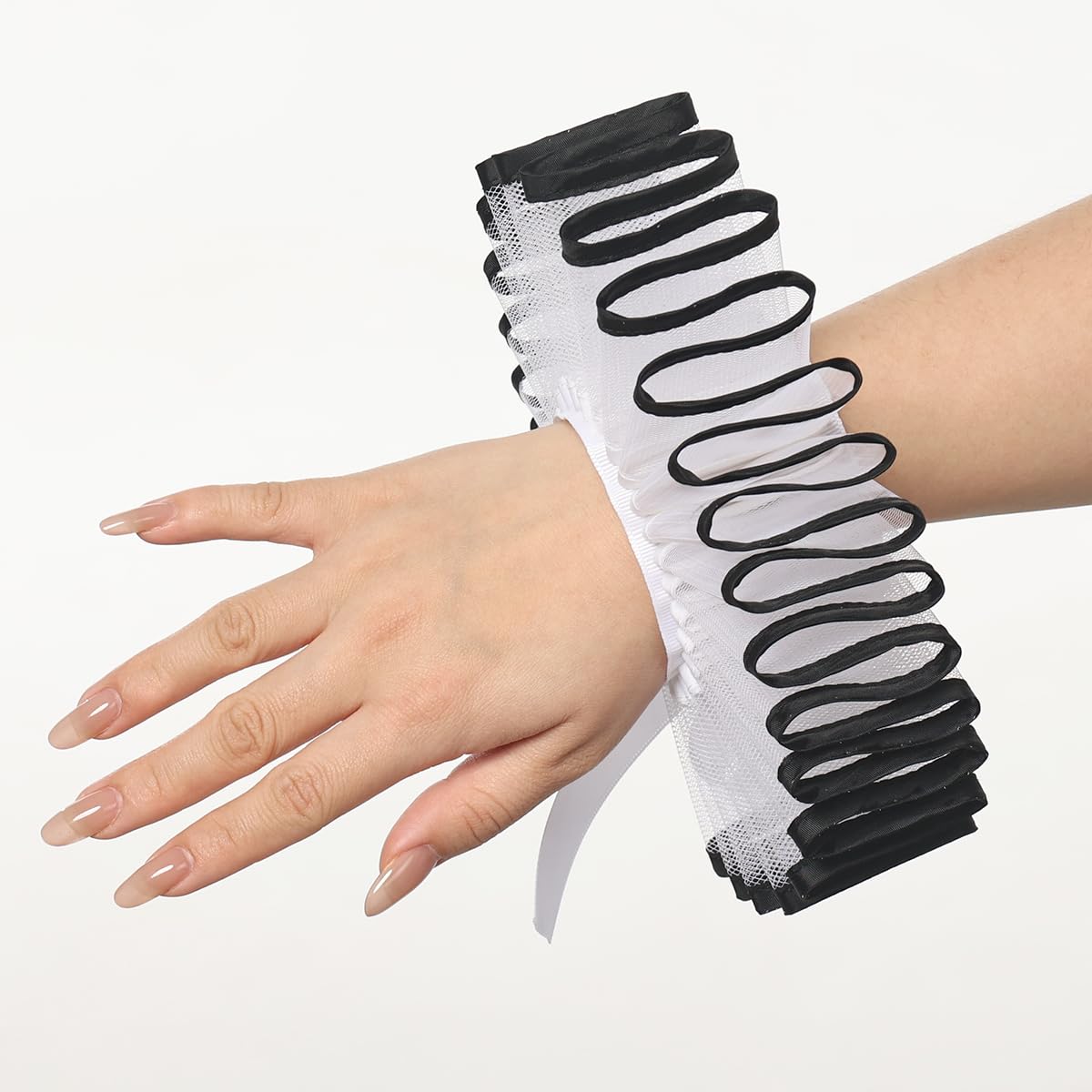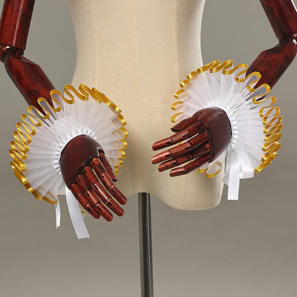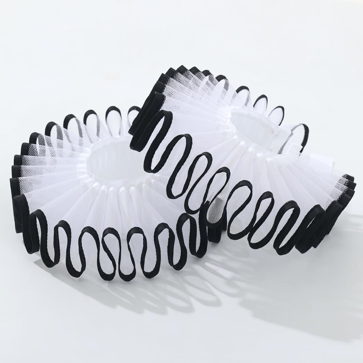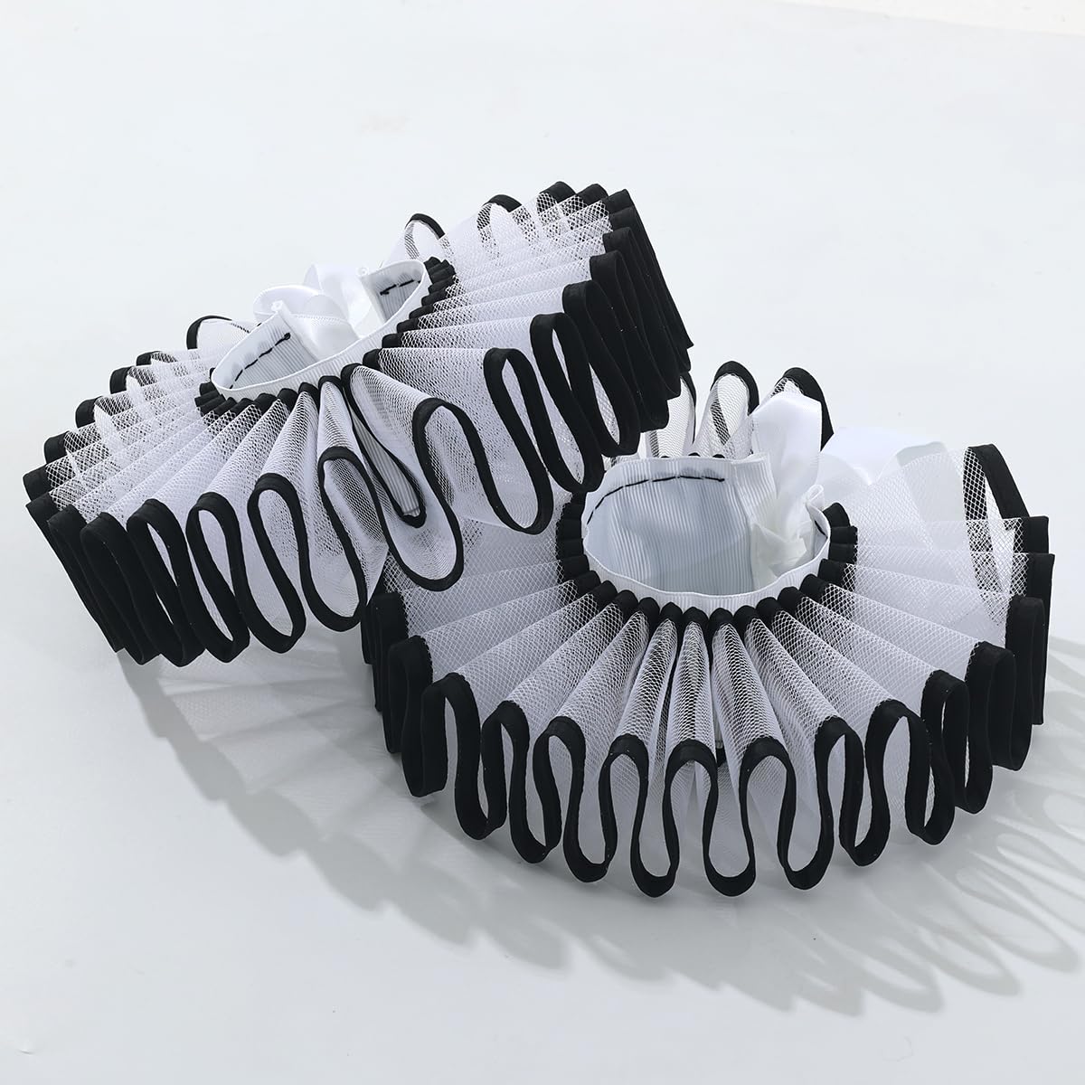 2 Pieces Renaissance Tudor Elizabethan Ruffled Wrist Ruffs Clown Hand Cuff Arm Bands Victorian Costume Fancy Dress Accessories for Halloween Carnival
