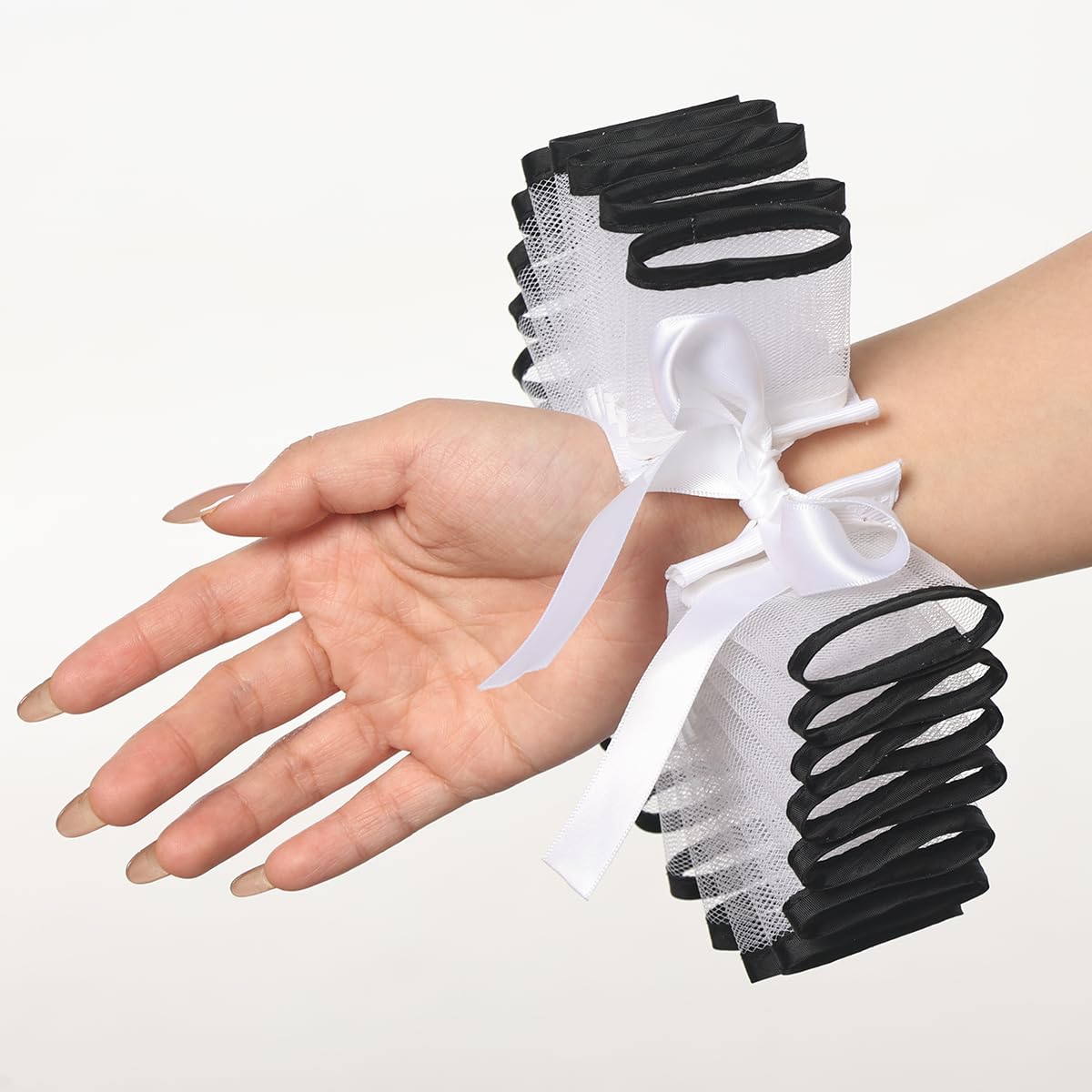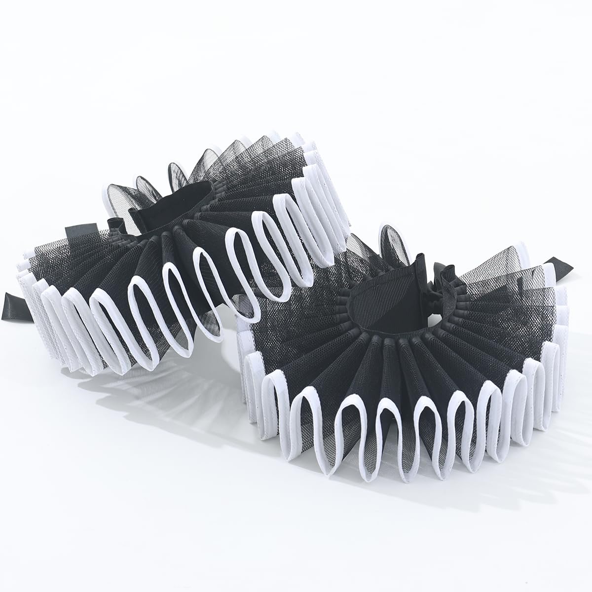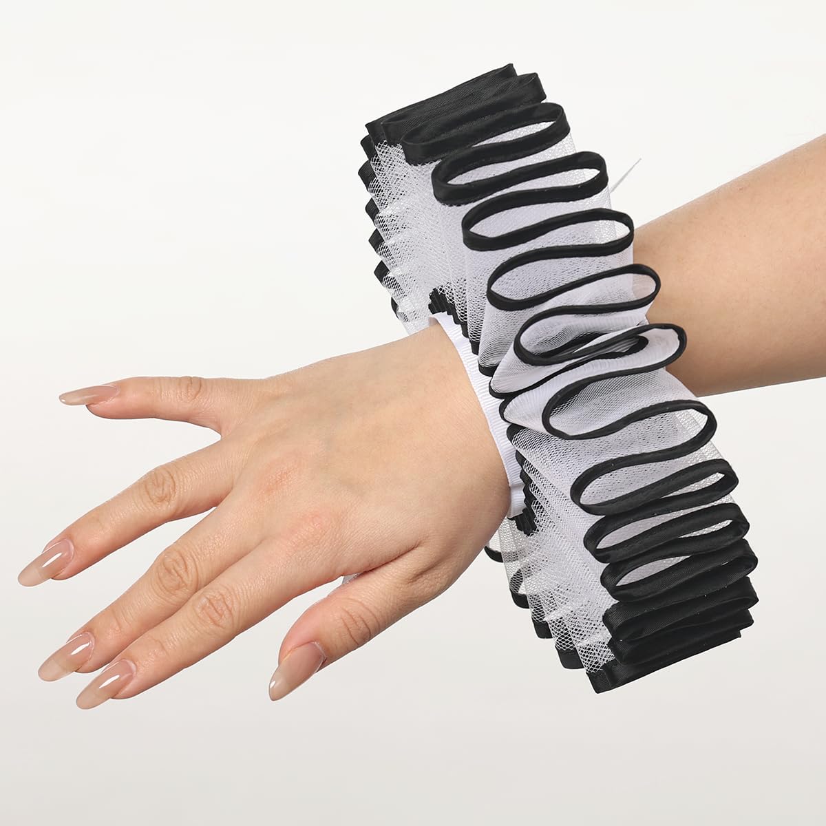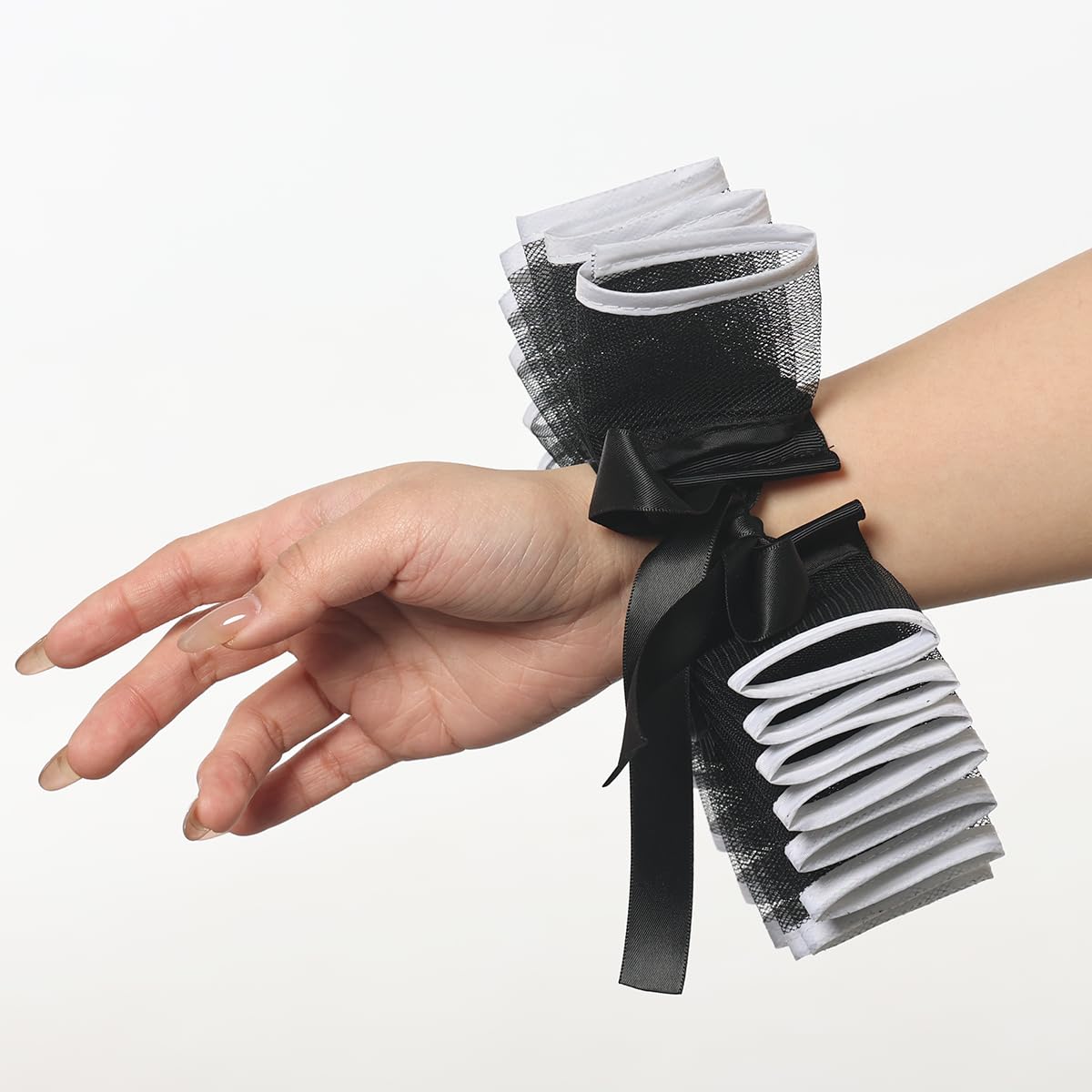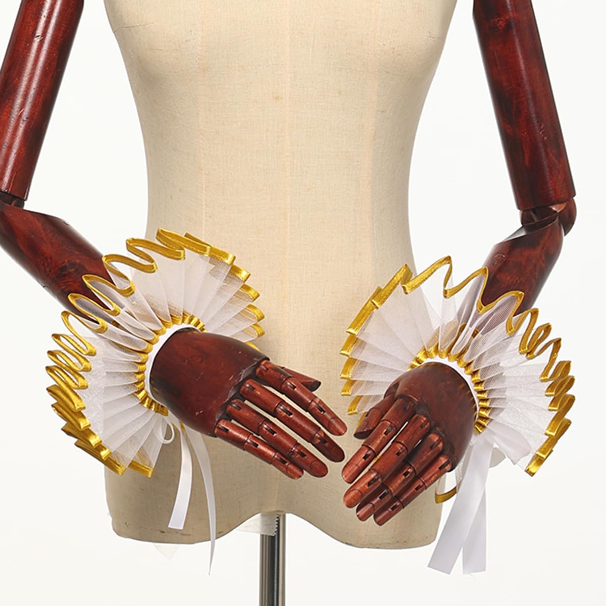 2 Pieces Renaissance Tudor Elizabethan Ruffled Wrist Ruffs Clown Hand Cuff Arm Bands Victorian Costume Fancy Dress Accessories for Halloween Carnival