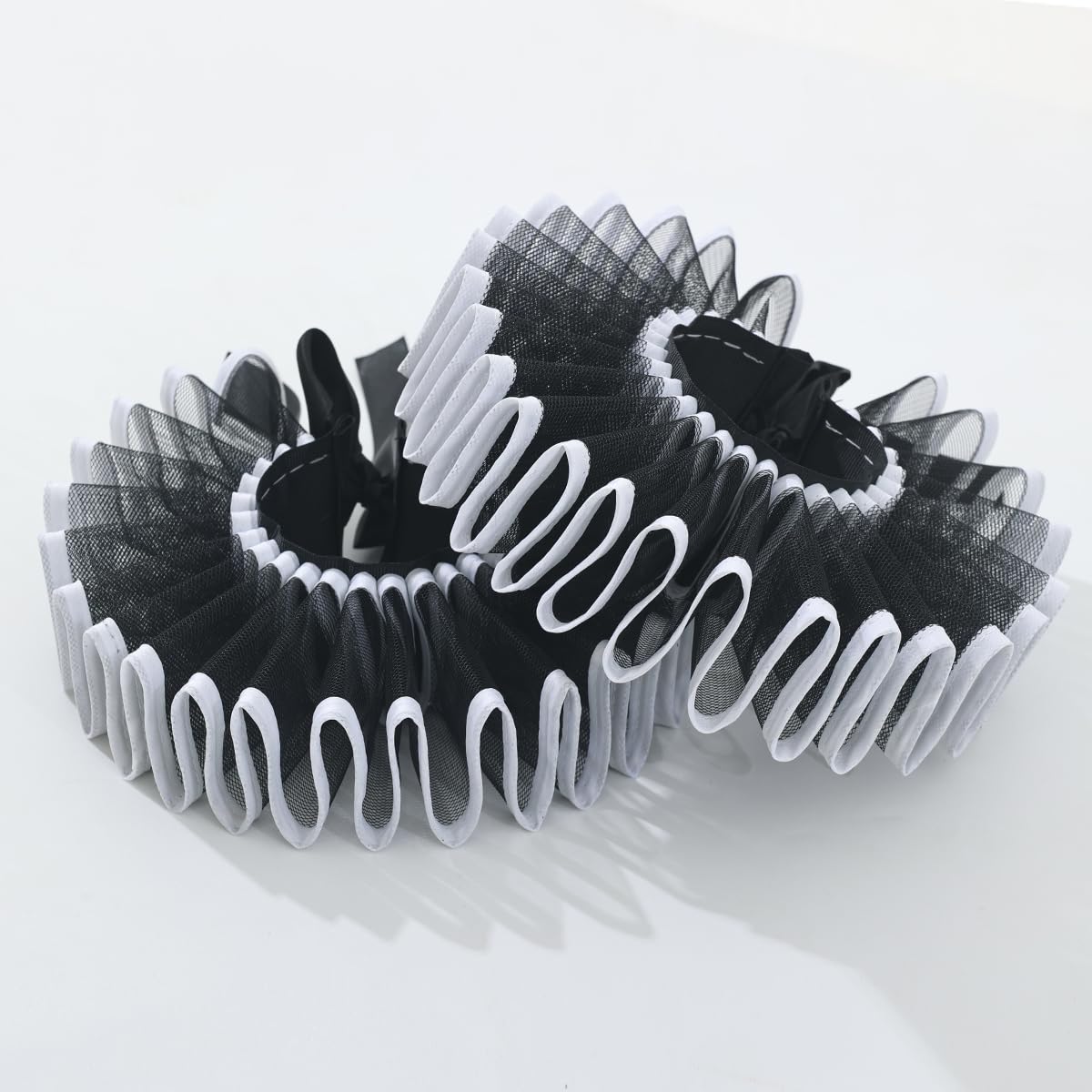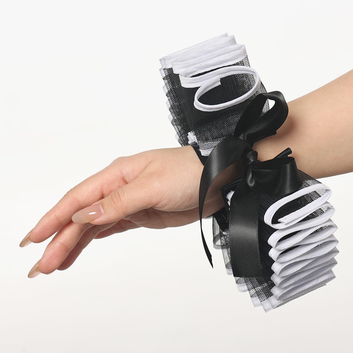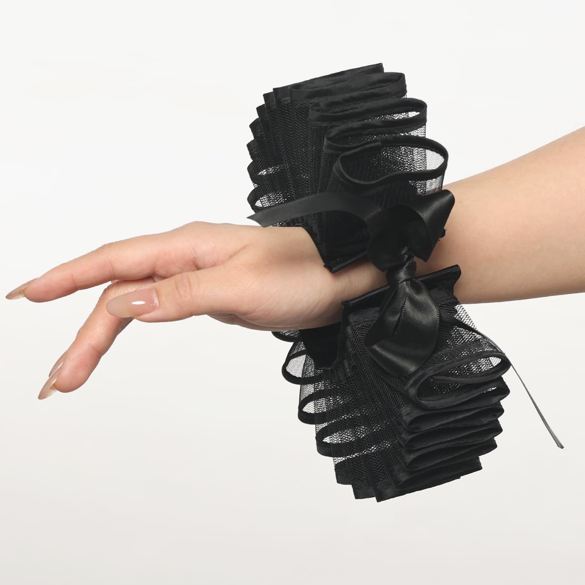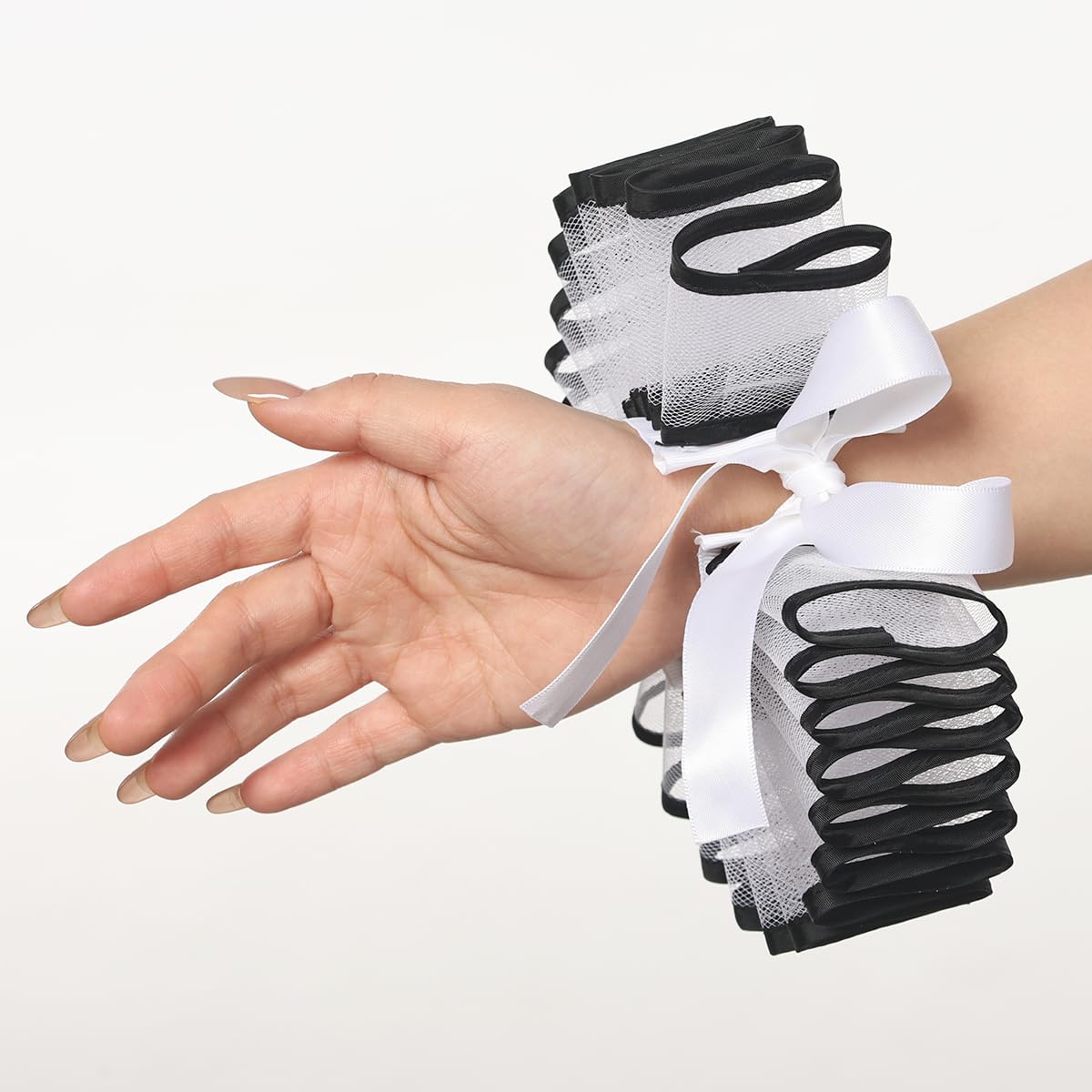 2 Pieces Renaissance Tudor Elizabethan Ruffled Wrist Ruffs Clown Hand Cuff Arm Bands Victorian Costume Fancy Dress Accessories for Halloween Carnival