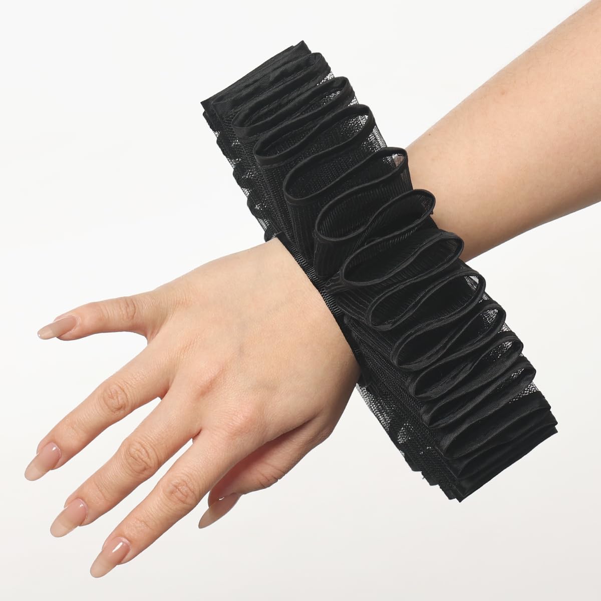 - Renaissance ruffle wrist cuff size: 6.5cm / 2.56 inches in width, 5cm/1.97 inches in height. One size fits most women and men with adjustable strap.