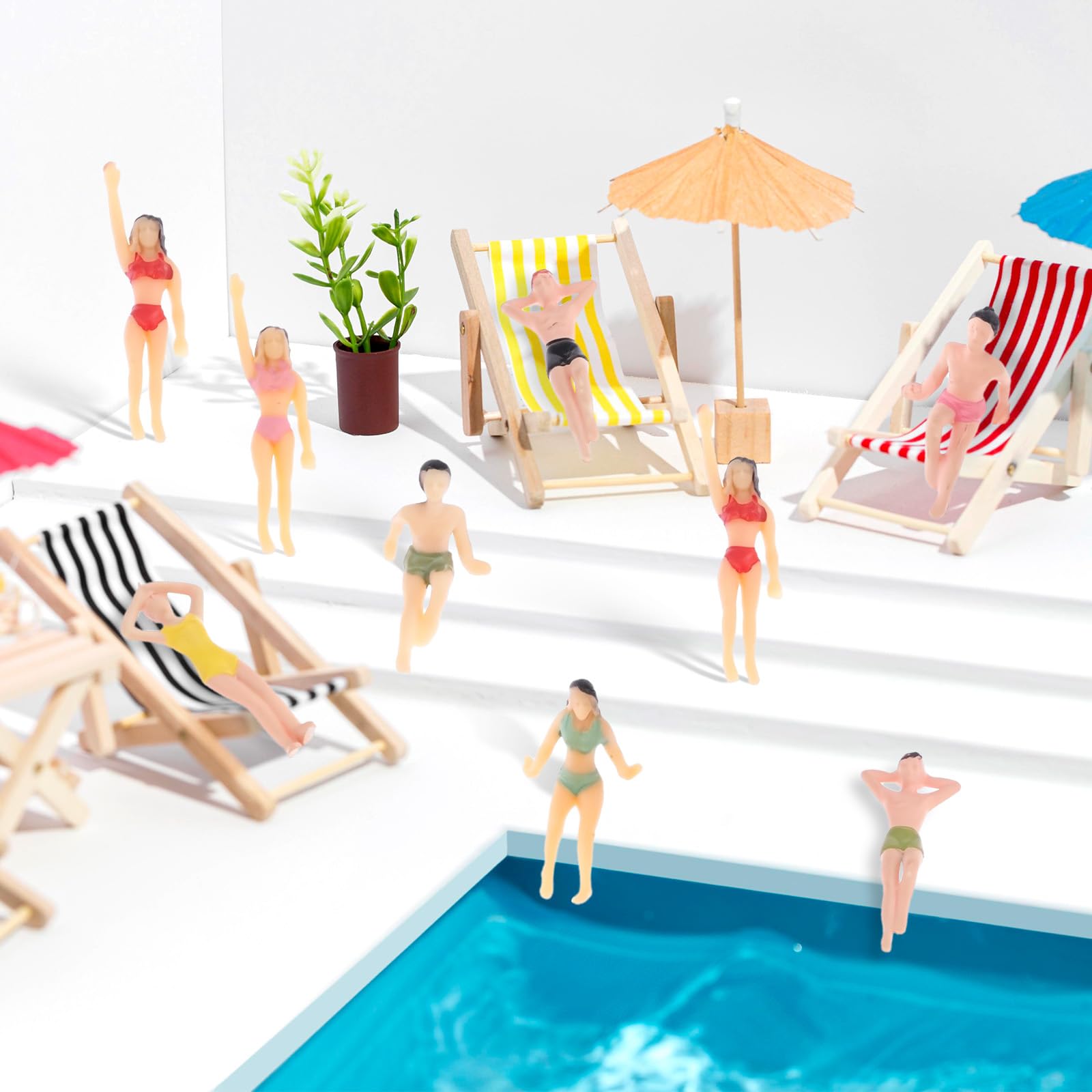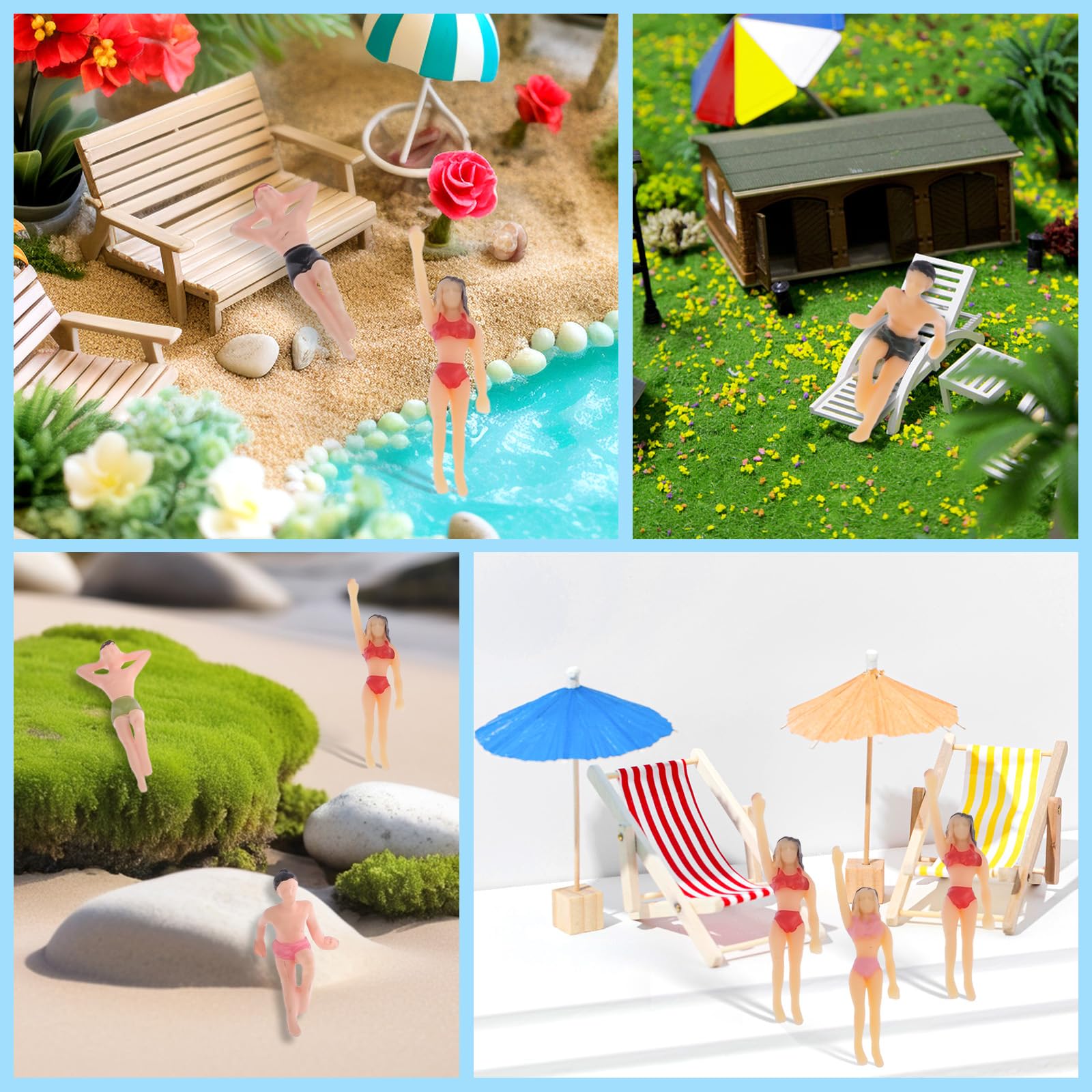 20Pack 1.4 inch Miniature Beach Swimsuits People Figures Model Train Diorama Scenics Building Kit, 1:50 Scale