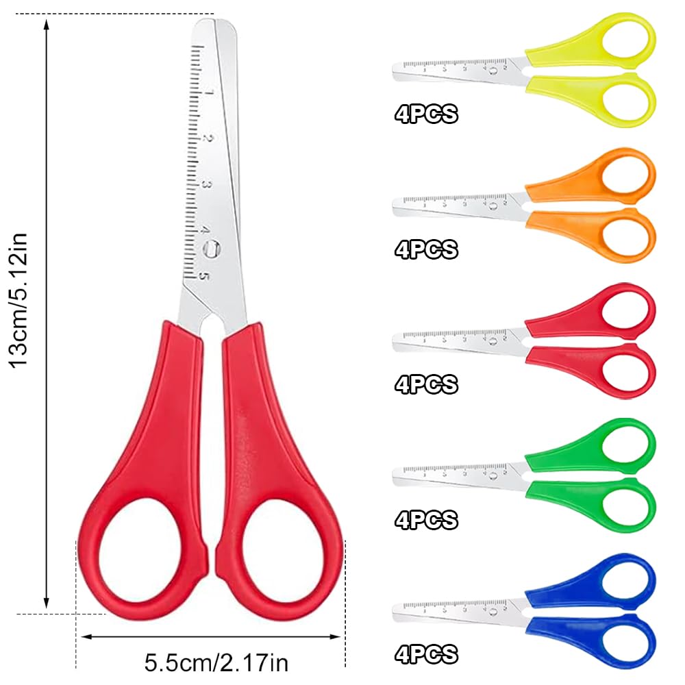 20pcs Kids Scissors, Children Blunt Tip Safety Scissor with CM Scale, Plastic Handle Handmade Scissors, Preschool Training Scissor for School Office Art DIY Craft