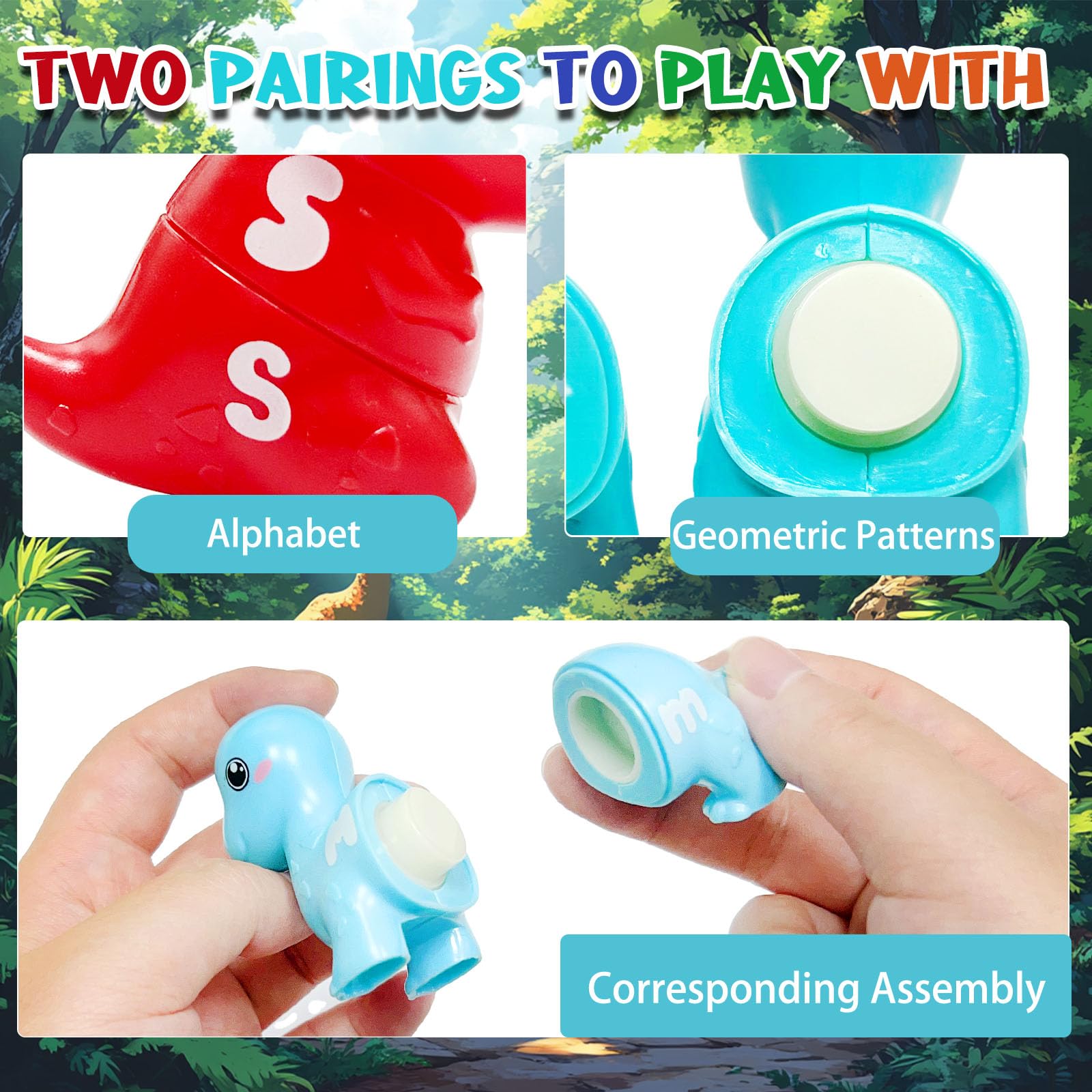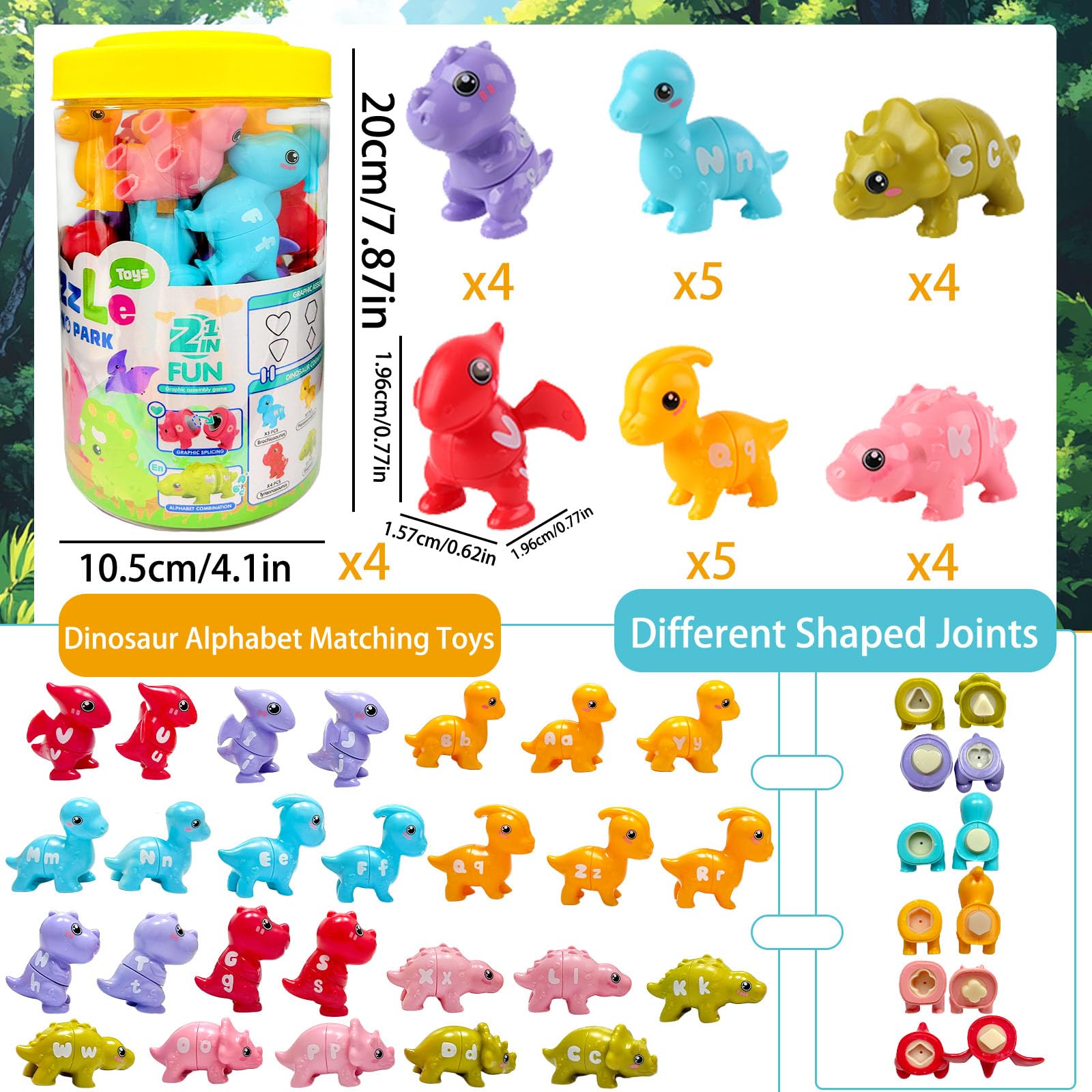- Unique DesignEach dinosaur in the ABC dinosaur alphabet toys is very cute, small and delicate, suitable for children to hold. Children can correctly match the dinosaur by the shape of the English or joints, thereby improving English learning and hand-eye coordination. 6 different dinosaurs can increase children’s understanding of dinosaur identification and classification. Dinosaur toys are a great helper for improving children’s fine motor skills