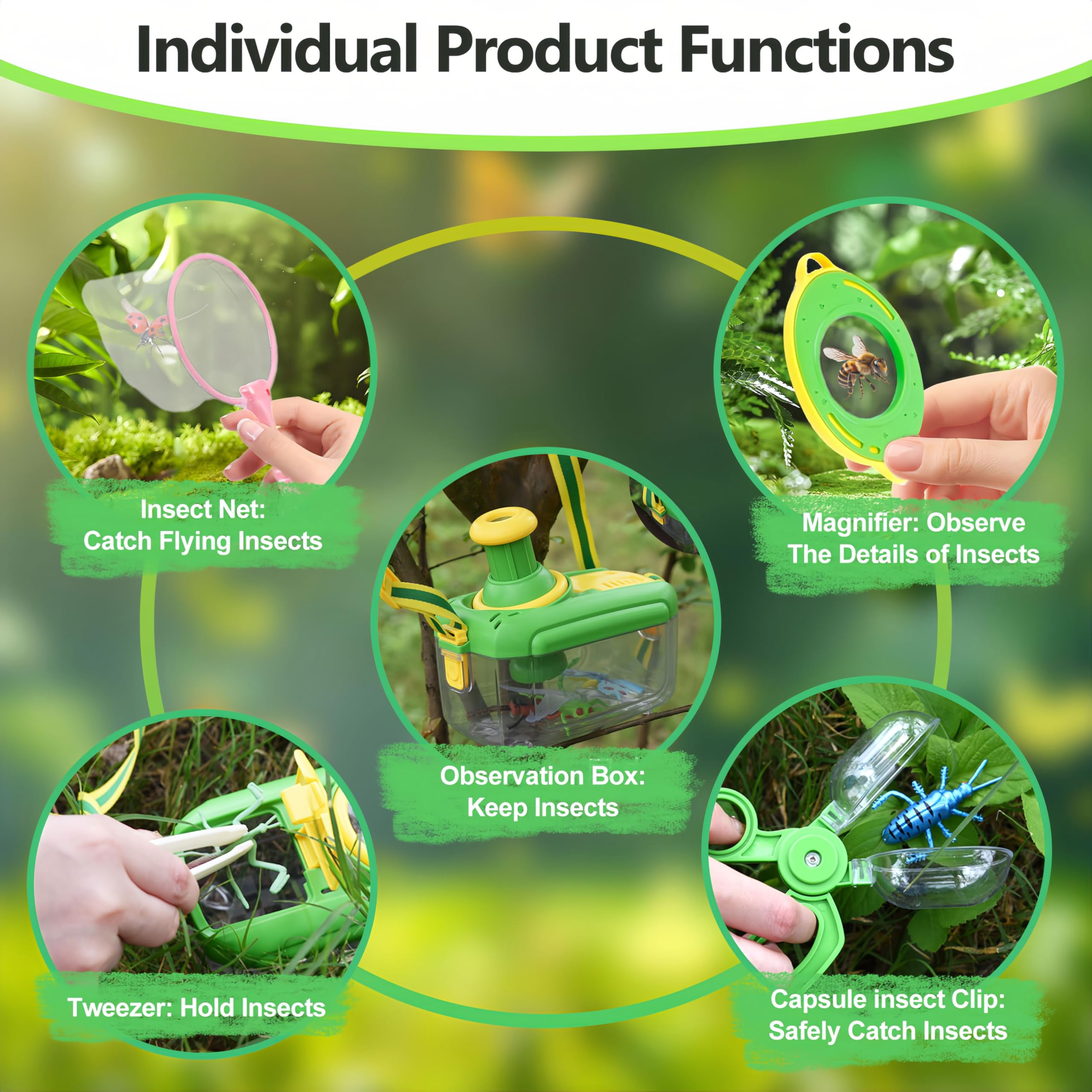 - [Safe and Durable]: The insect catching set is mainly made of high-quality plastic, which is sturdy and durable, not easy to break and crack, safe and odorless. It can stimulate the spirit of exploration, continuously improve cognitive ability and expand thinking during play.