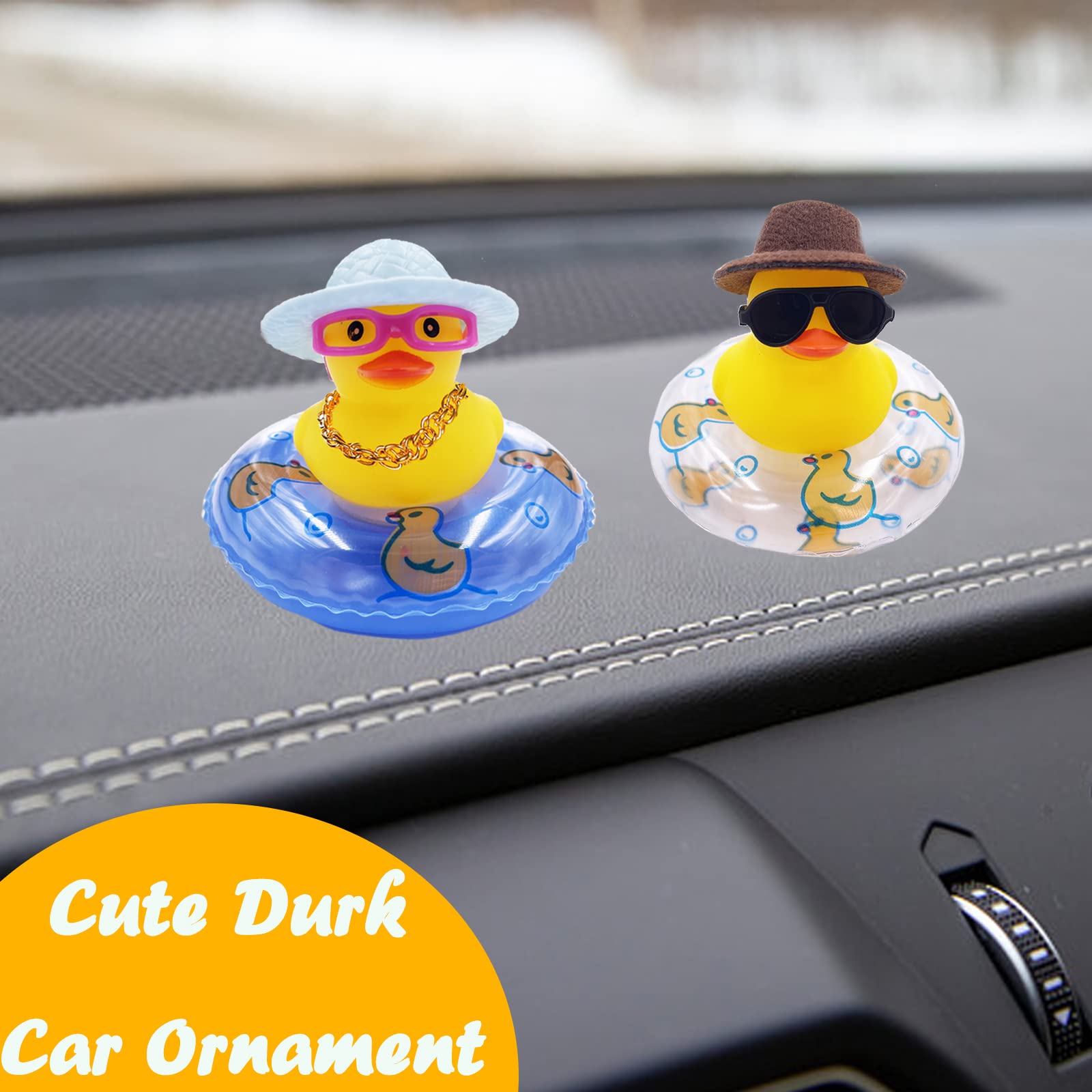 2PCS Car Rubber Duck Decoration Dashboard Yellow Duck with Hat Sunglasses Gold Chain Donut Scarf for Bath Toys Baby Shower Toy Car Office Bedroom Ornaments