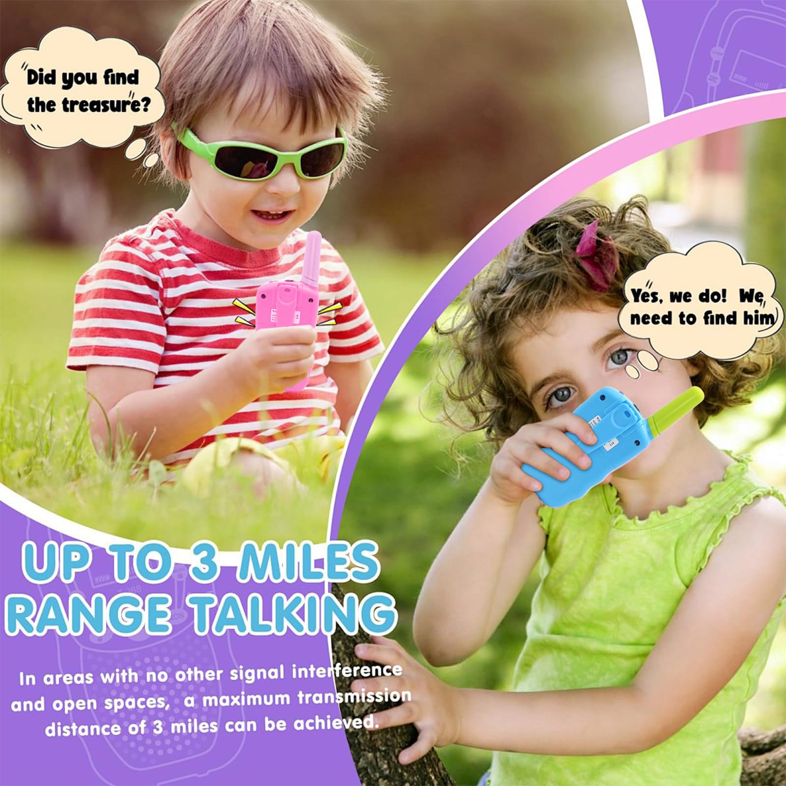 - 3 km Connectivity Range: Our Long-range kids walkie talkies for camping feature a remarkable 3 – km range. Ideal for camping, hiking, or indoor/outdoor play, they ensure clear communication within 3 kilometers. A great partner for kids’ adventures, keeping them connected and safe.