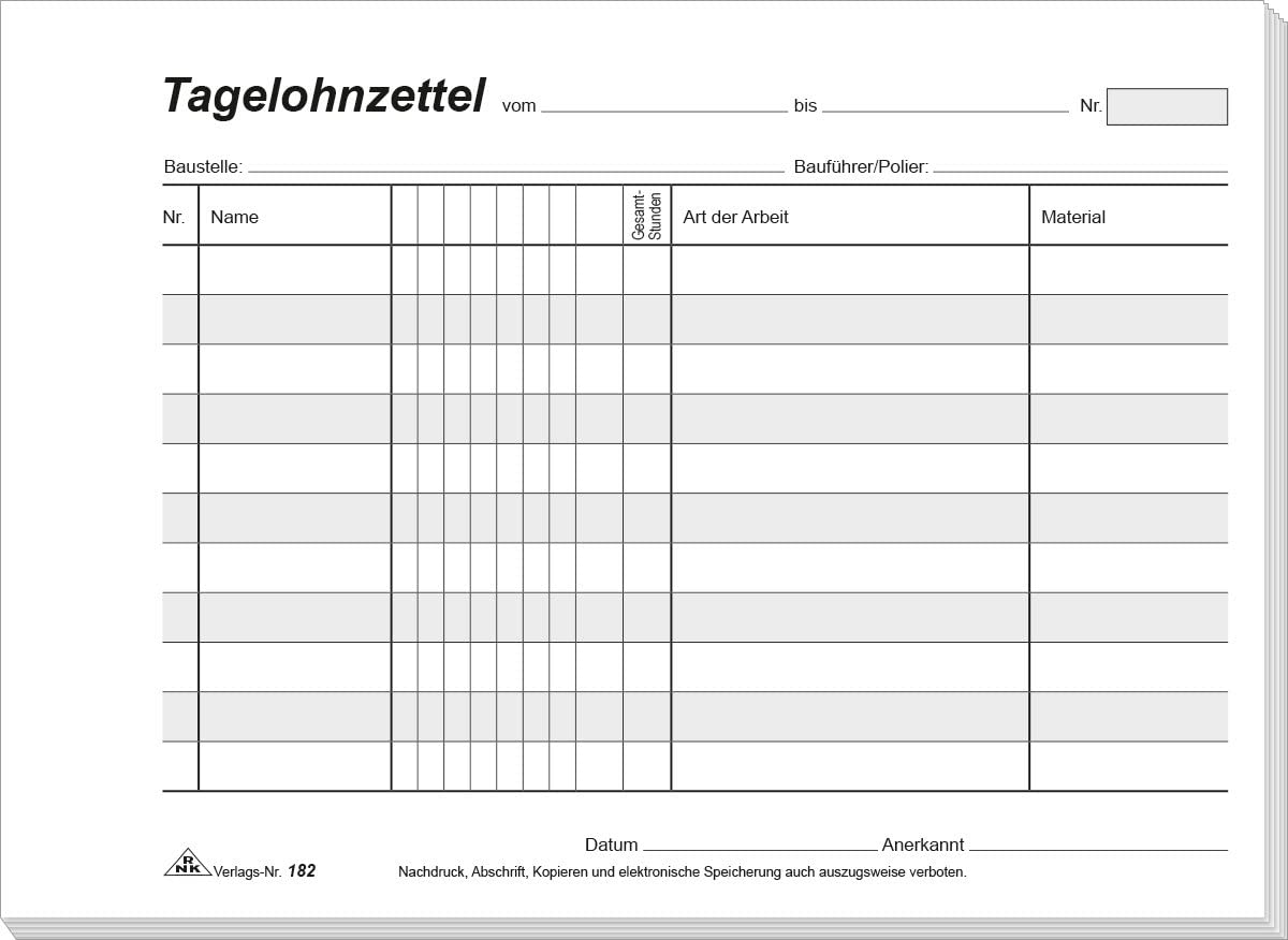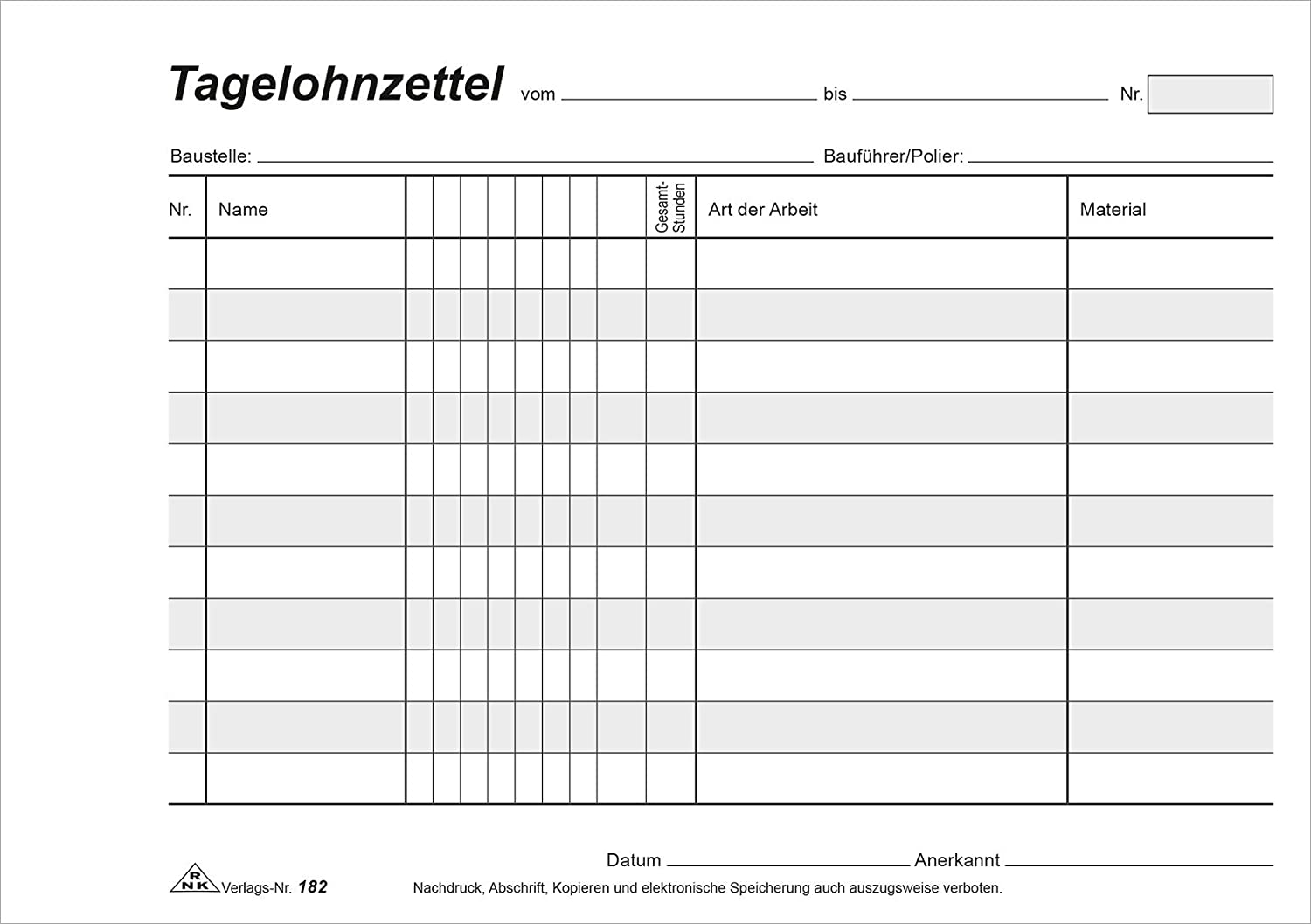 für mehrere Arbeiter auf einer Baustelle , mit breiten Spalten für Arbeit und Material, quer DIN A5, 3 x 40 sheets, sheets, selbstdurchschreibend 1. perforiert weiß 2. perforiert Sheets, Yellow, 3. Sheets fest RNK 182, rosa