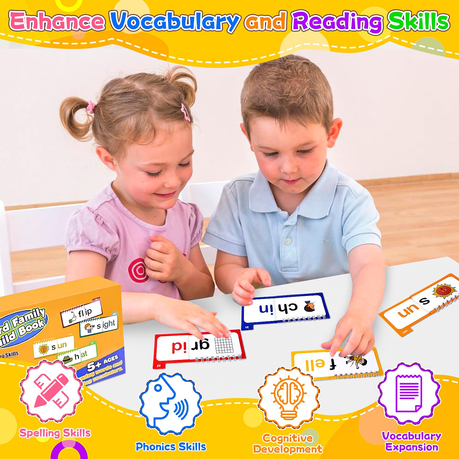 2. Fun Phonics Word Games: With reading word family flip books, children can enjoy phonics games, combining learning with play, promoting new word creation and pronunciation recognition.