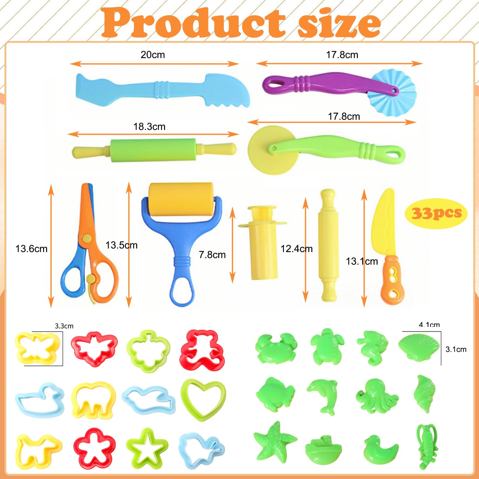 33 Pcs Playdough Set, Playdough Accessories, Play Doh Tools, Playdough Sets, Play Dough Tools, Rollers Cutters Extruders Kit,Kids DIY Creation Play Dough Set for Toddlers Boys Girls
