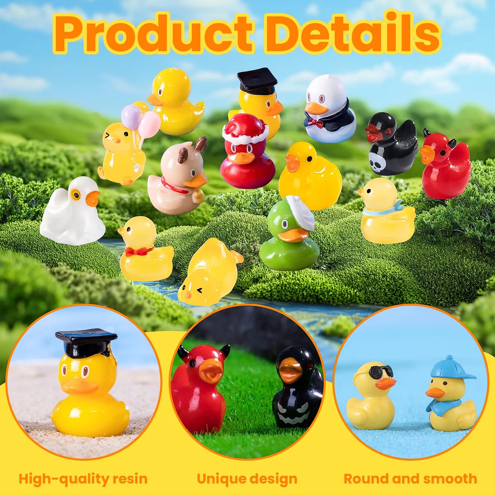 - High-quality MaterialsThese little ducks are made of high-quality resin, with a solid and smooth texture. The bright colors are long-lasting and not easy to fade, not easy to break, and have excellent durability. It can still maintain a brand new appearance during long-term use.