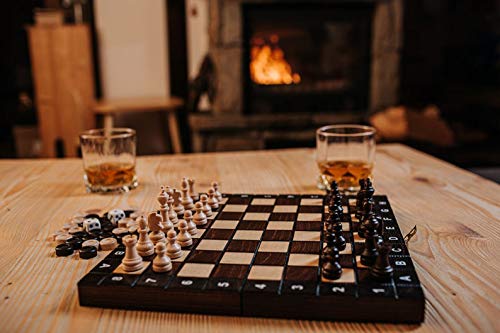 3in1 Backgammon Chess and Checkers Set | Master of Chess | Small Wooden Chess Board 26 cm | Handmade Portable Chess Draughts/Drafts and Backgammon Set for Adults and For Kids