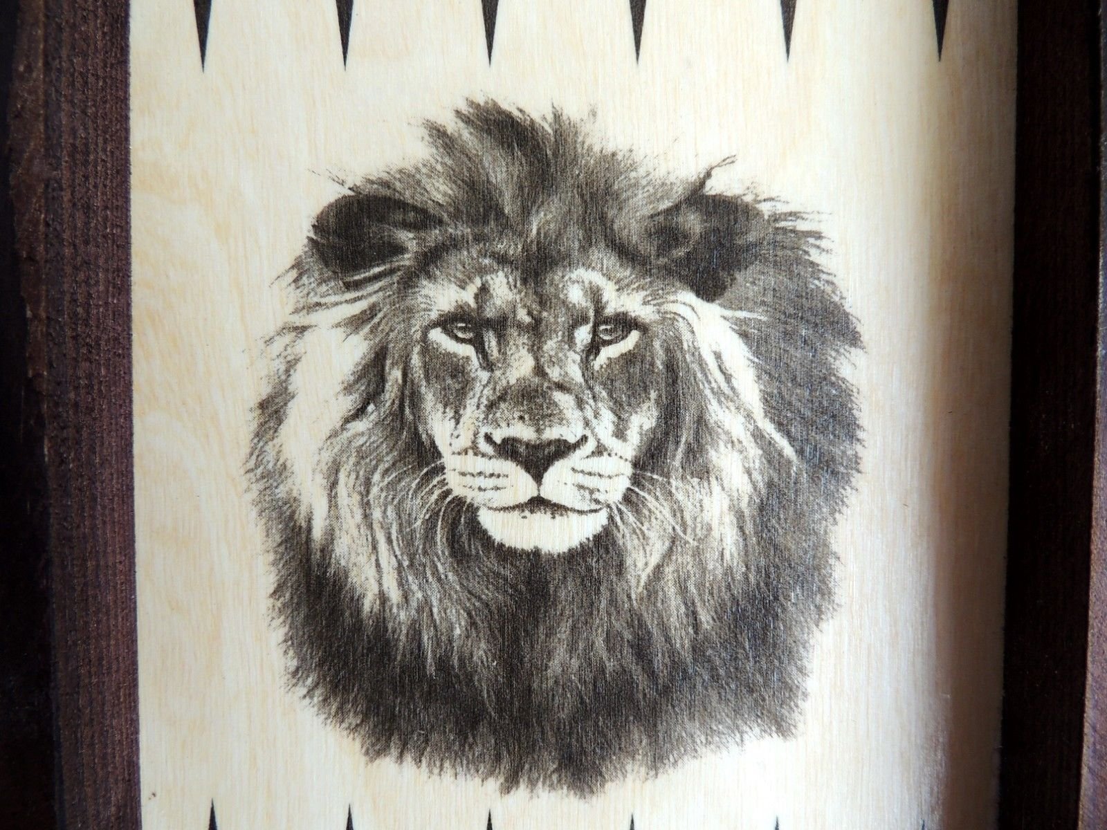 - – Each set has hand-burnished divisions between the chessboard fields, and is lacquered to highlight the natural color of the used wood. The inside of the case is prepared for backammon play, with printed decorated triangular playing fields and a majestic lion to decorate the wooden chess board.