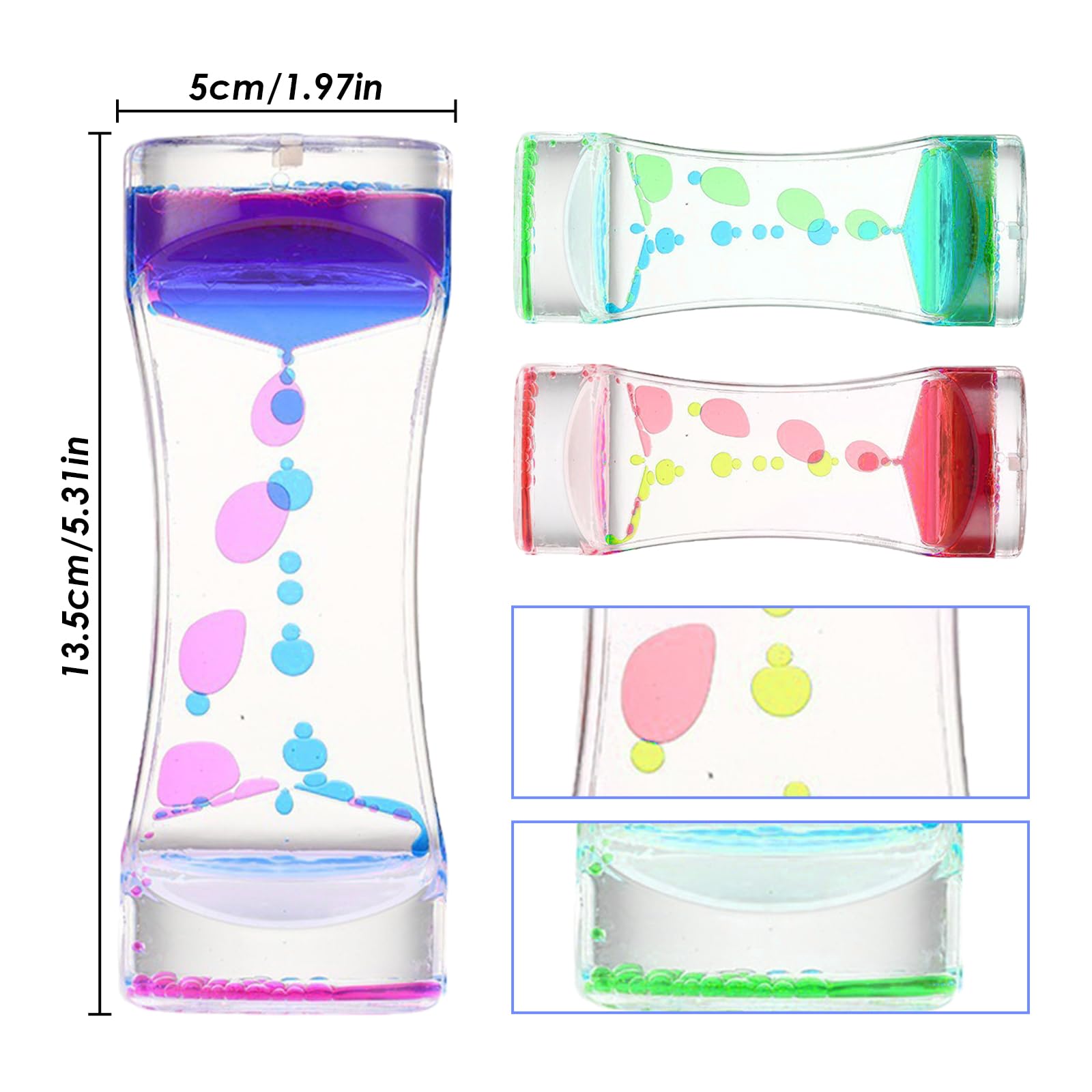 - COMPACT AND LIGHTWEIGHT DESIGN Measuring 13.5 x 5 cm, each liquid motion bubbler timer is easy to carry, offering portable relaxation wherever you go