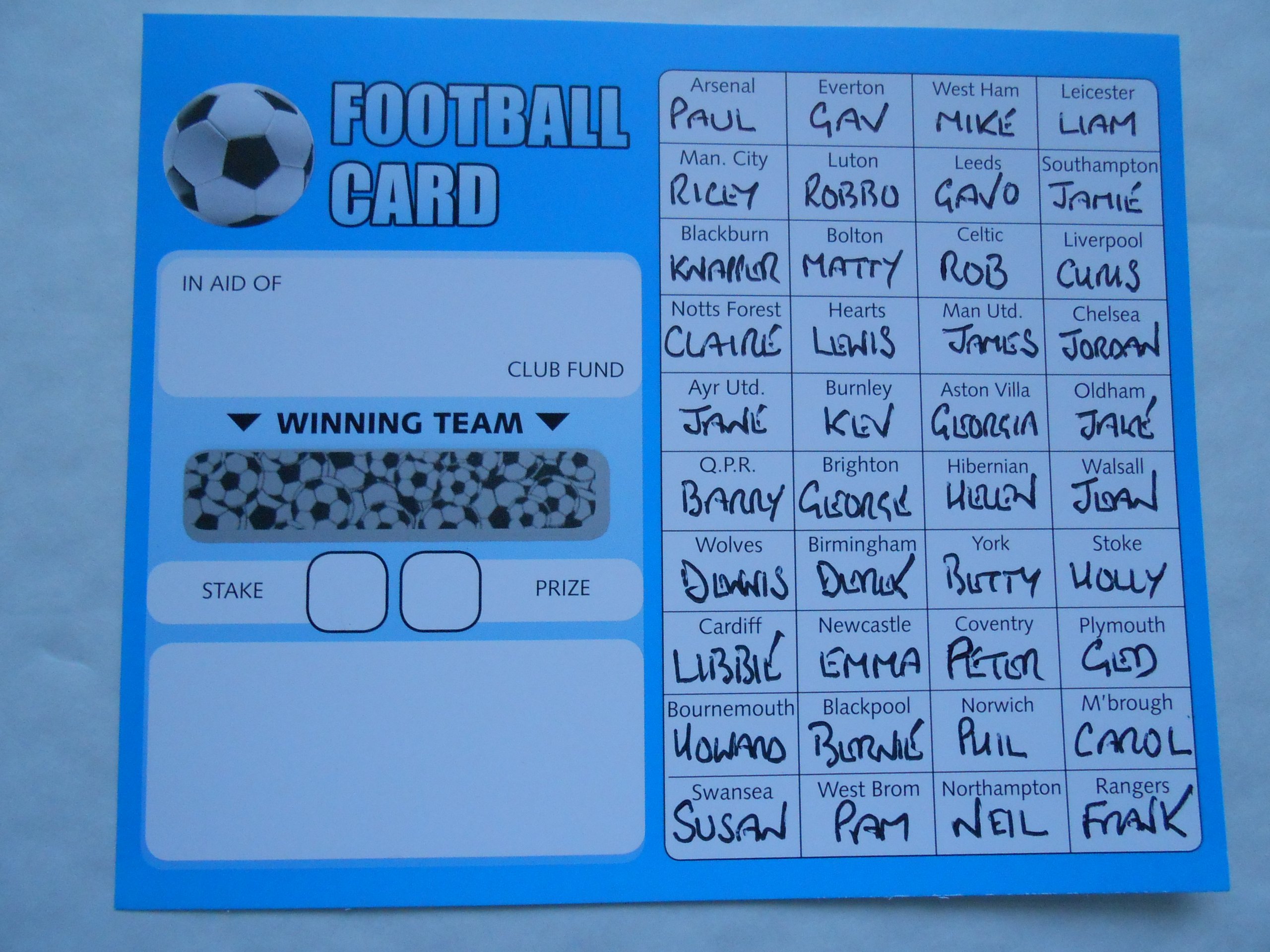 40 SPACE FOOTBALL SCRATCH CARDS SET OF 10( WHITE AND BLUE) RAISE 200 PROFIT