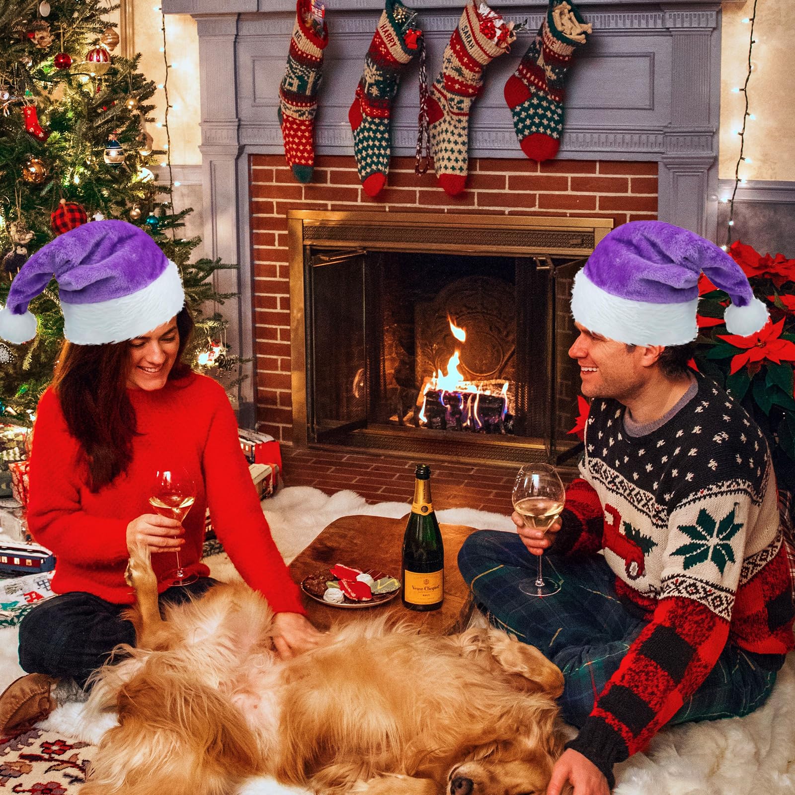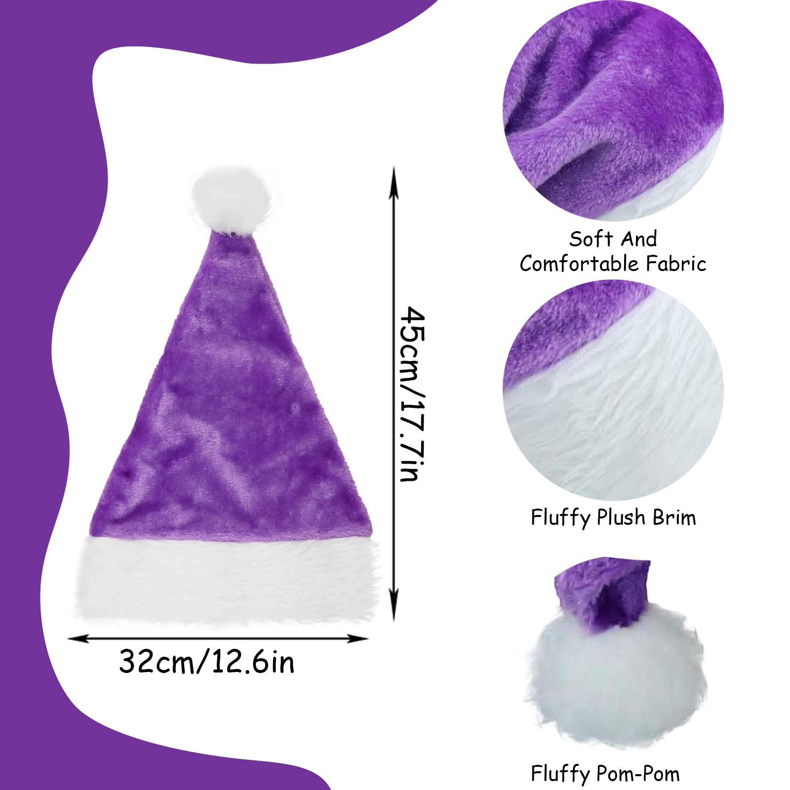 45cm Christmas Hats Santa Hat for Adults,2 Pcs Deluxe Velvet Xmas Santa Claus Hat,Unisex Velvet Comfort Christmas Party Hat Thicken Classic Fur for New Year Festive Christmas Party Supplies(Purple)