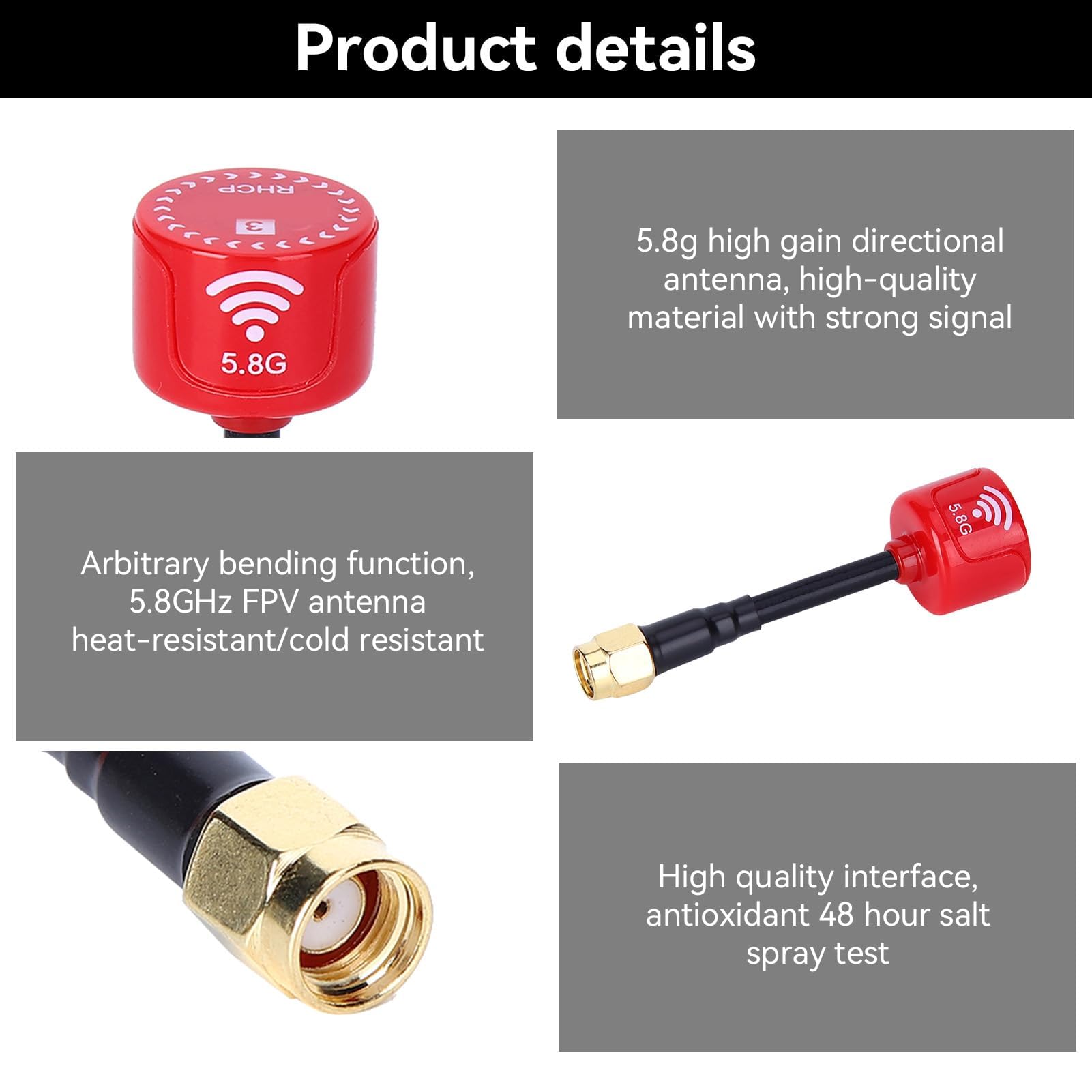 - GOOD WORKMANSHIP: 5.8Ghz Gain 3dBi RHCP antenna, low feeder loss, easy to install, 8Ghz Antenna 5 can be bent at any angle and maintain. Directional high gain 5.8G antenna, quality material for strong signal, drone antenna is more steady gain and anticrash.