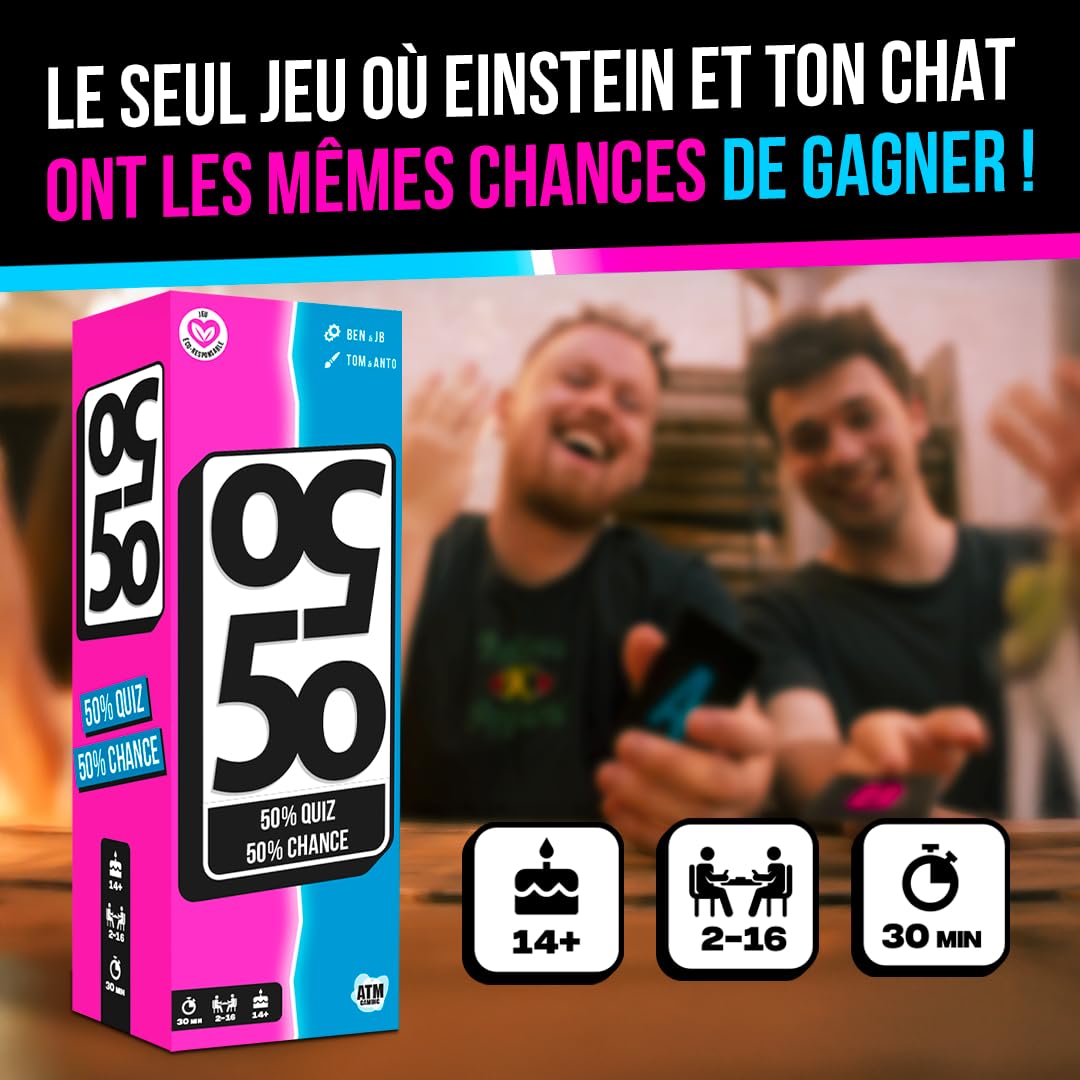 50 50 Board Game Fun General Culture Quiz Mood Game for Teens and Adults from 2 Players Family, Parties, Aperitifs, Funny and Original Gift Compact Format