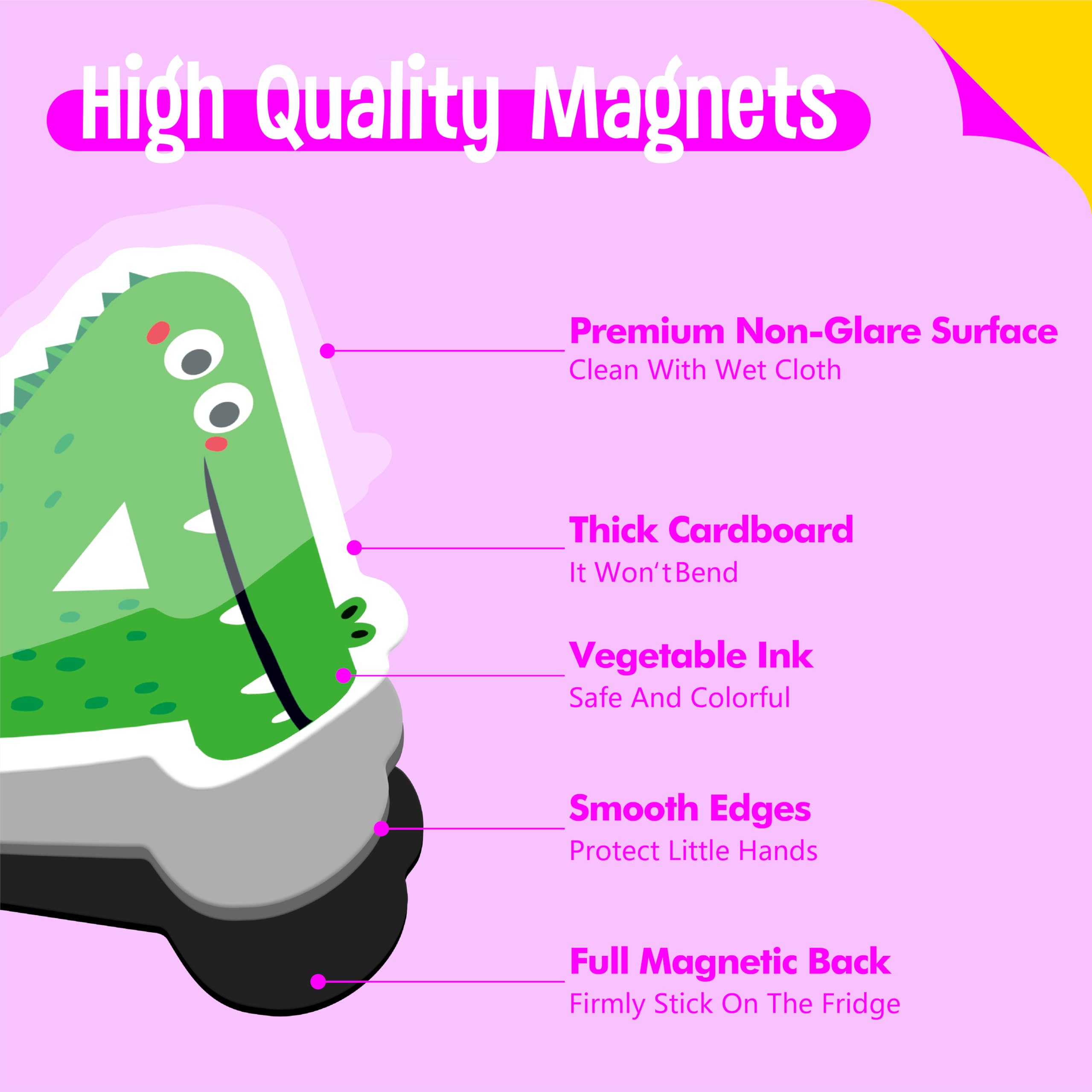 - PREMIUM MATERIAL: Printed with non-toxic plant ink, which will not release harmful substances. High quality and thickened cardboard makes the magnets for lasting use, neither bend nor fold. The round and smooth edge is harmless, and suitable for small hands.